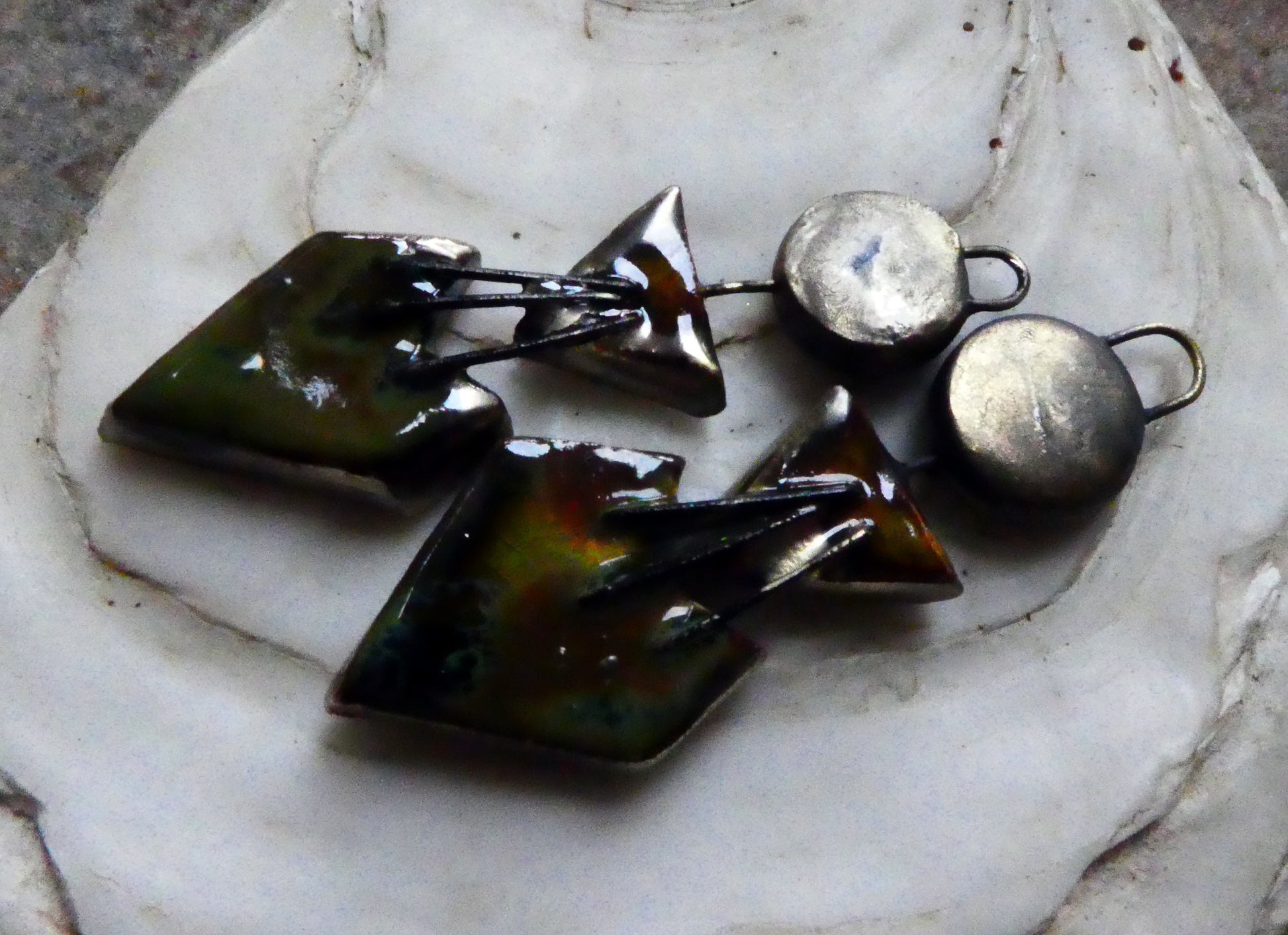 Ceramic Art Deco Inspired Stapled Dangles -Pagoda