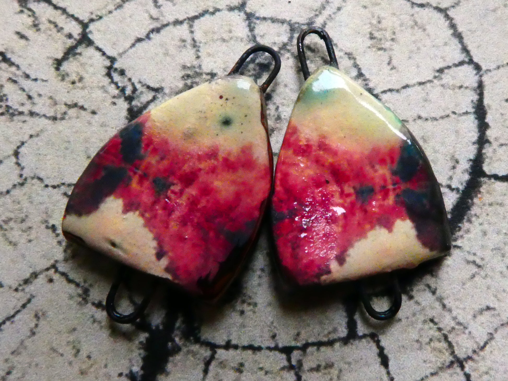 Hand formed in Earthstone and high fired. Then fired again with Gloss glaze and Bronze clay. Applied with Autumn scene decals, and fired again. Then applied with Copper lustre and fired for the fourth time.