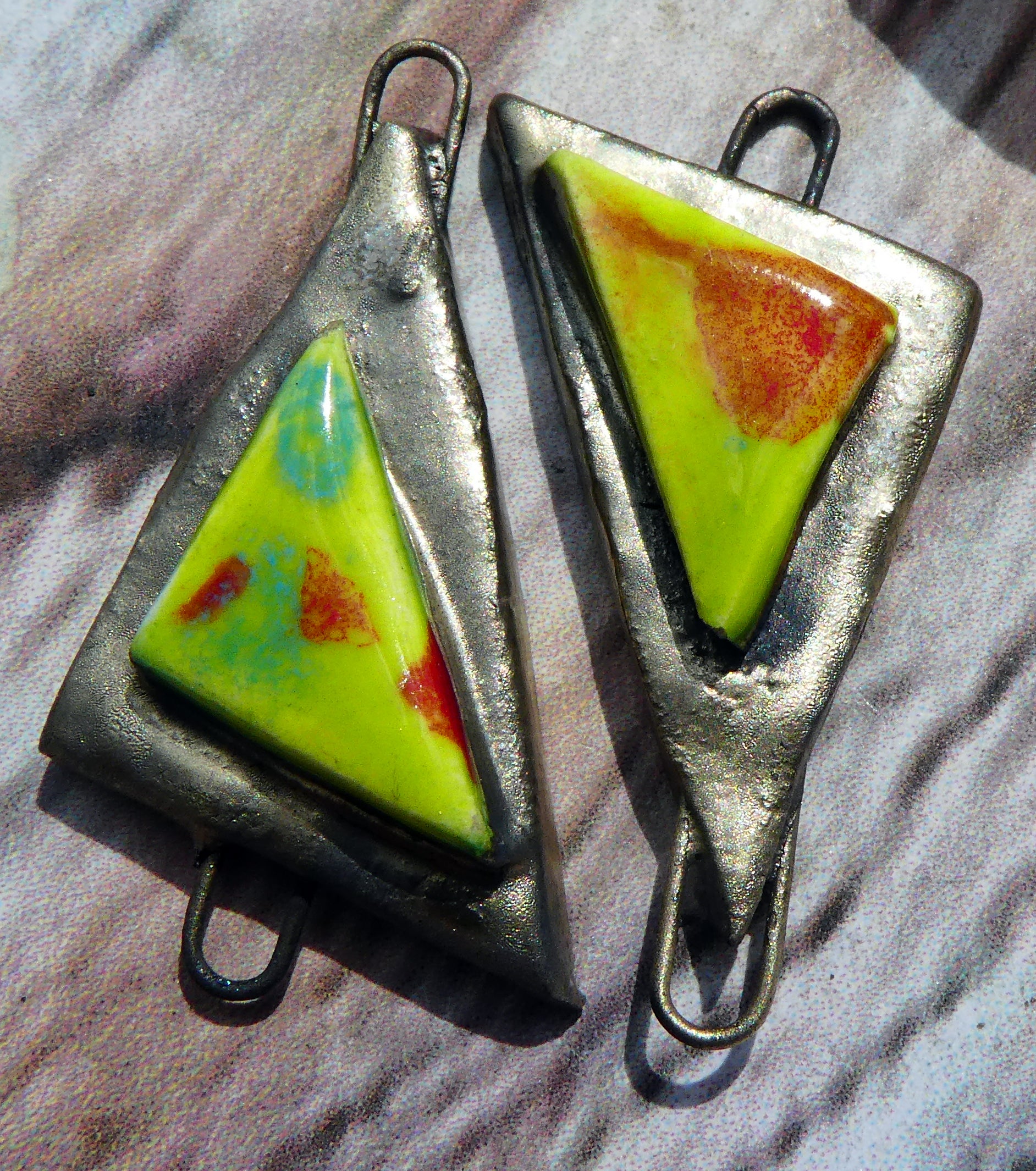 Ceramic Aymmetric Triangle Moulded Connectors -Cherry Limeade
