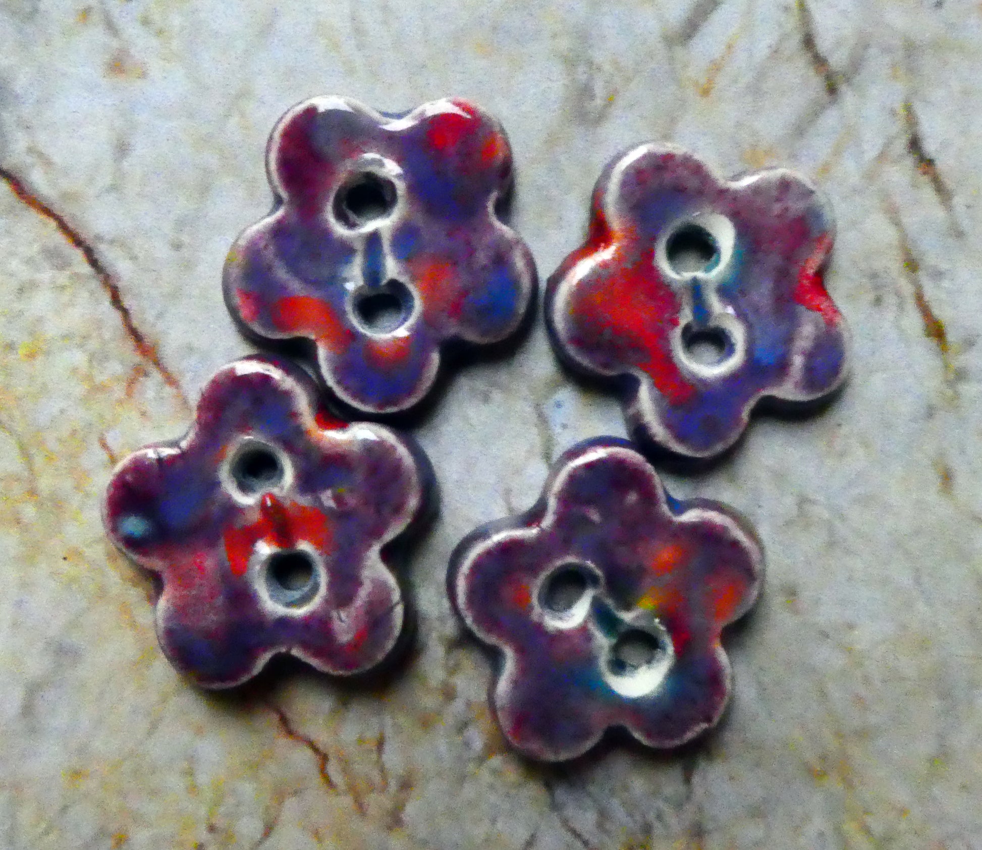 A set of four of ceramic flower buttons.