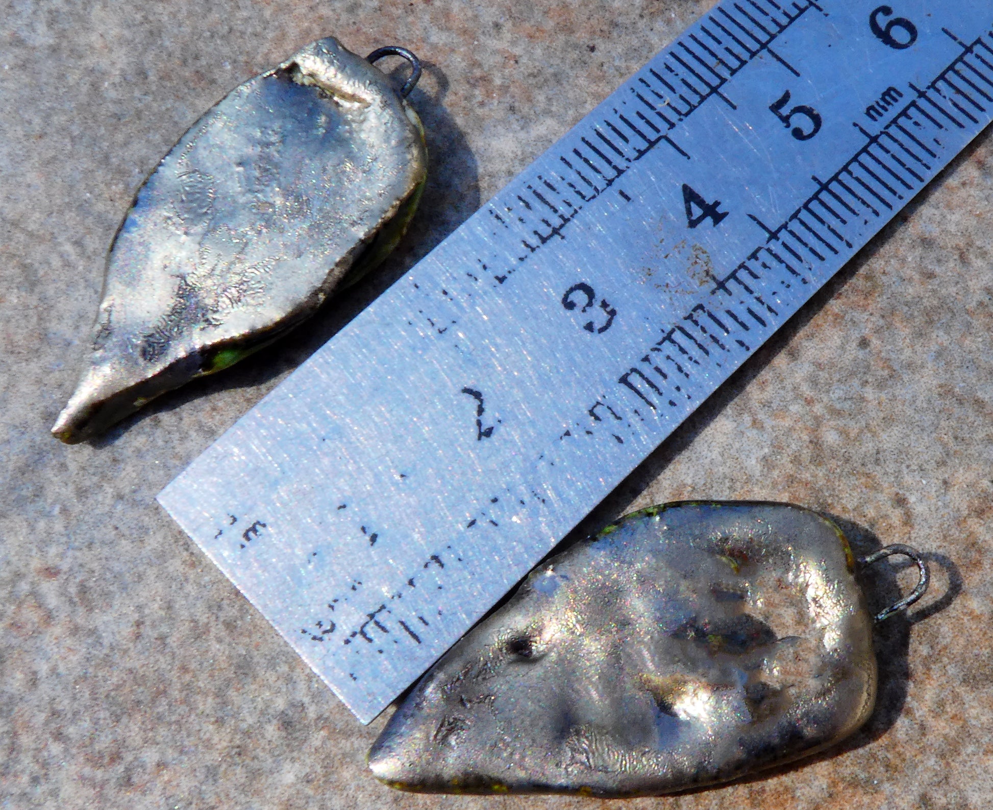 A pair of bark textured shards.
