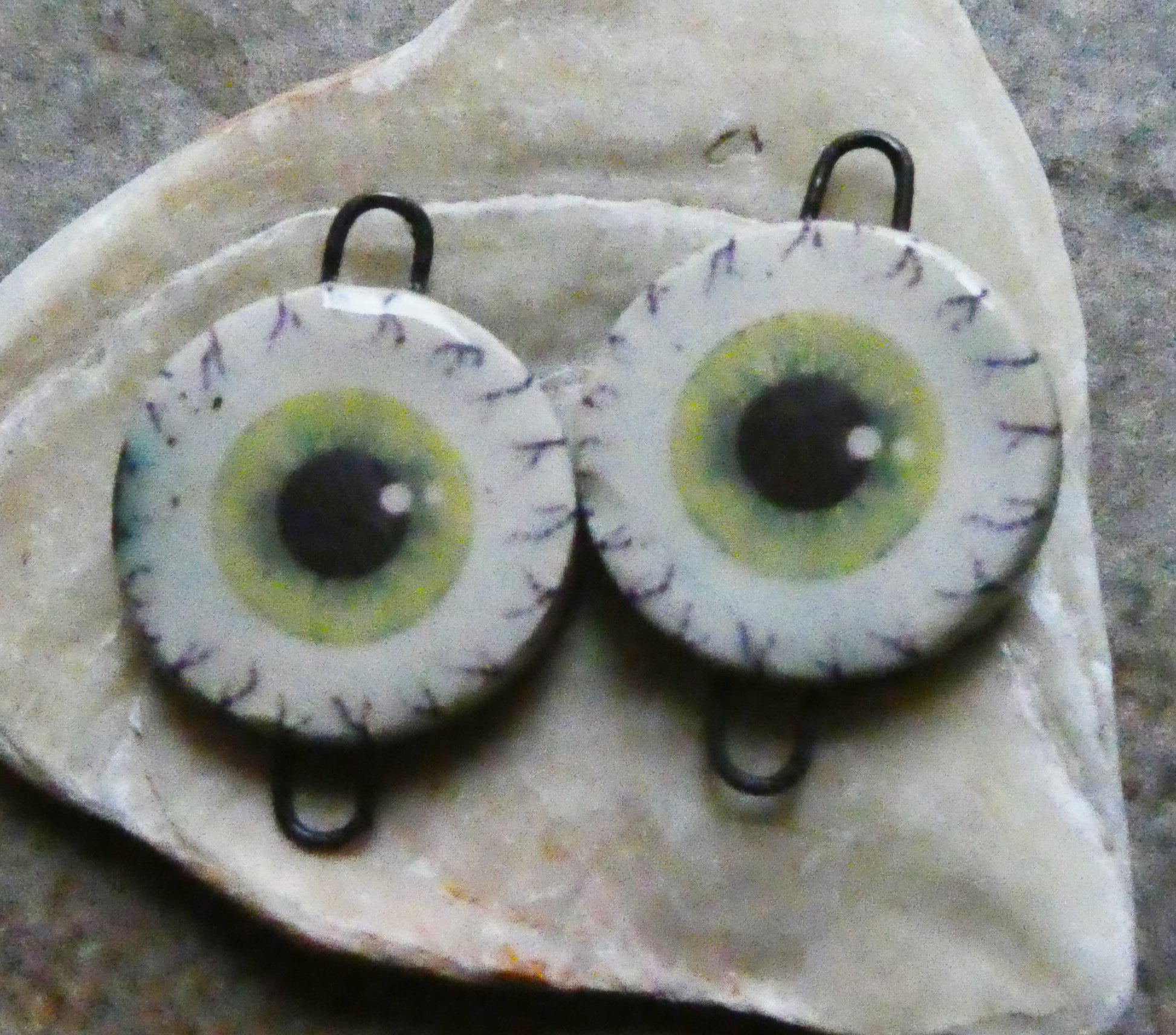 Hand formed in Earthstone, and high fired. Then fired again with bronze clay and Gloss glaze. Applied with decals and fired again. Scorched on the backs to a coppery rainbow finish.