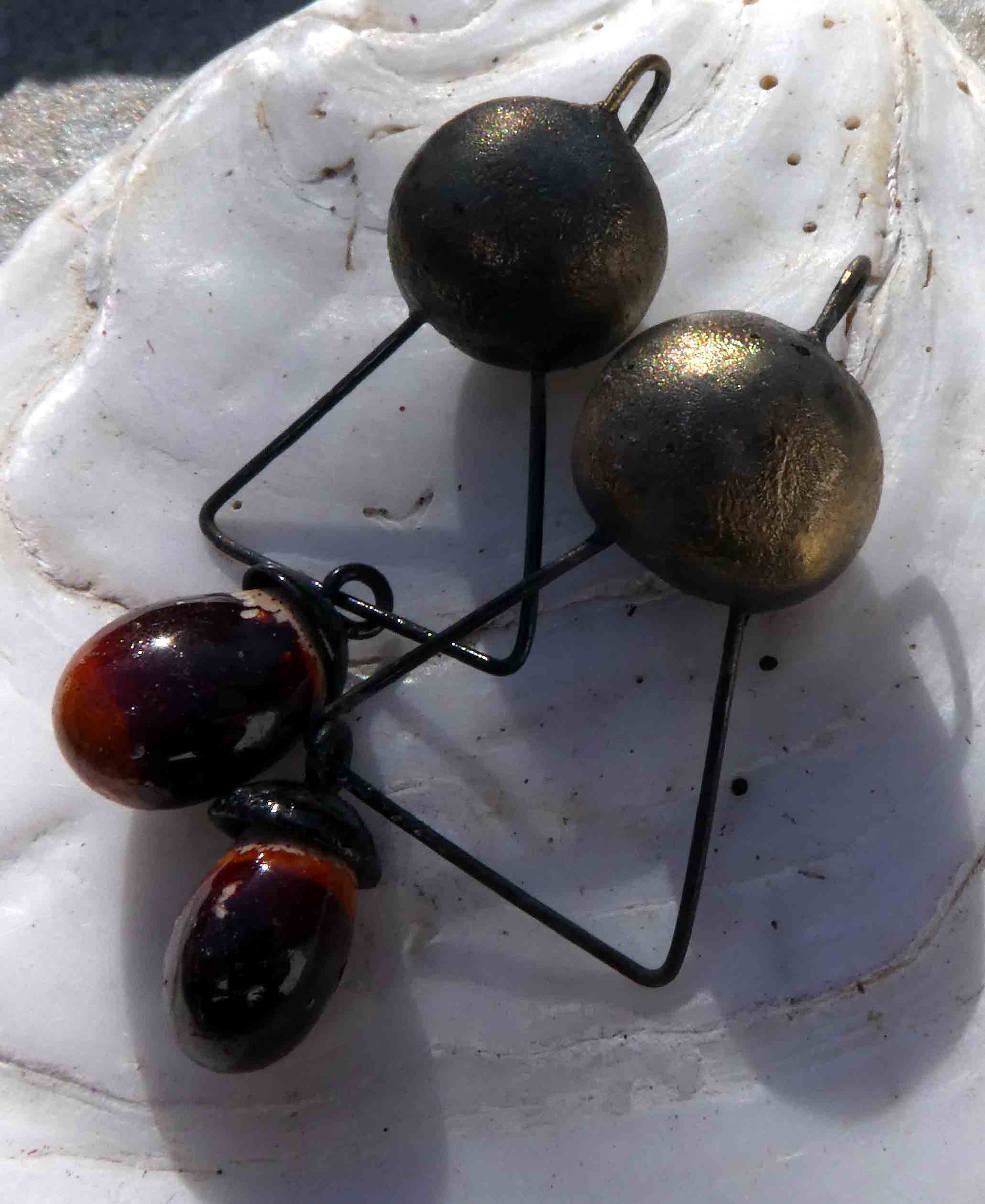 Ceramic Bobbles and Droplets Earring Dangles -Brown