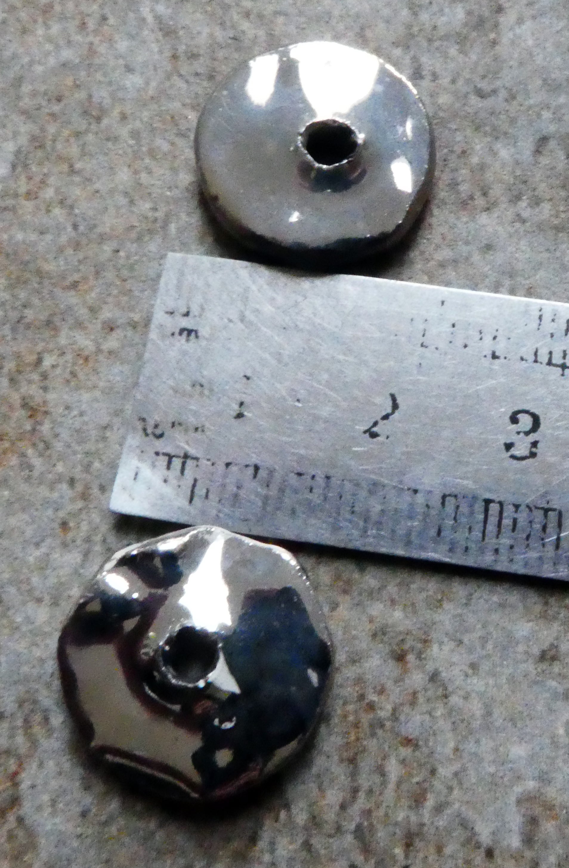 Hand formed in Earthstone, textured and high fired. Applied with Gloss glaze and fired again. Then applied with Platinum Lustre, and fired once more.
