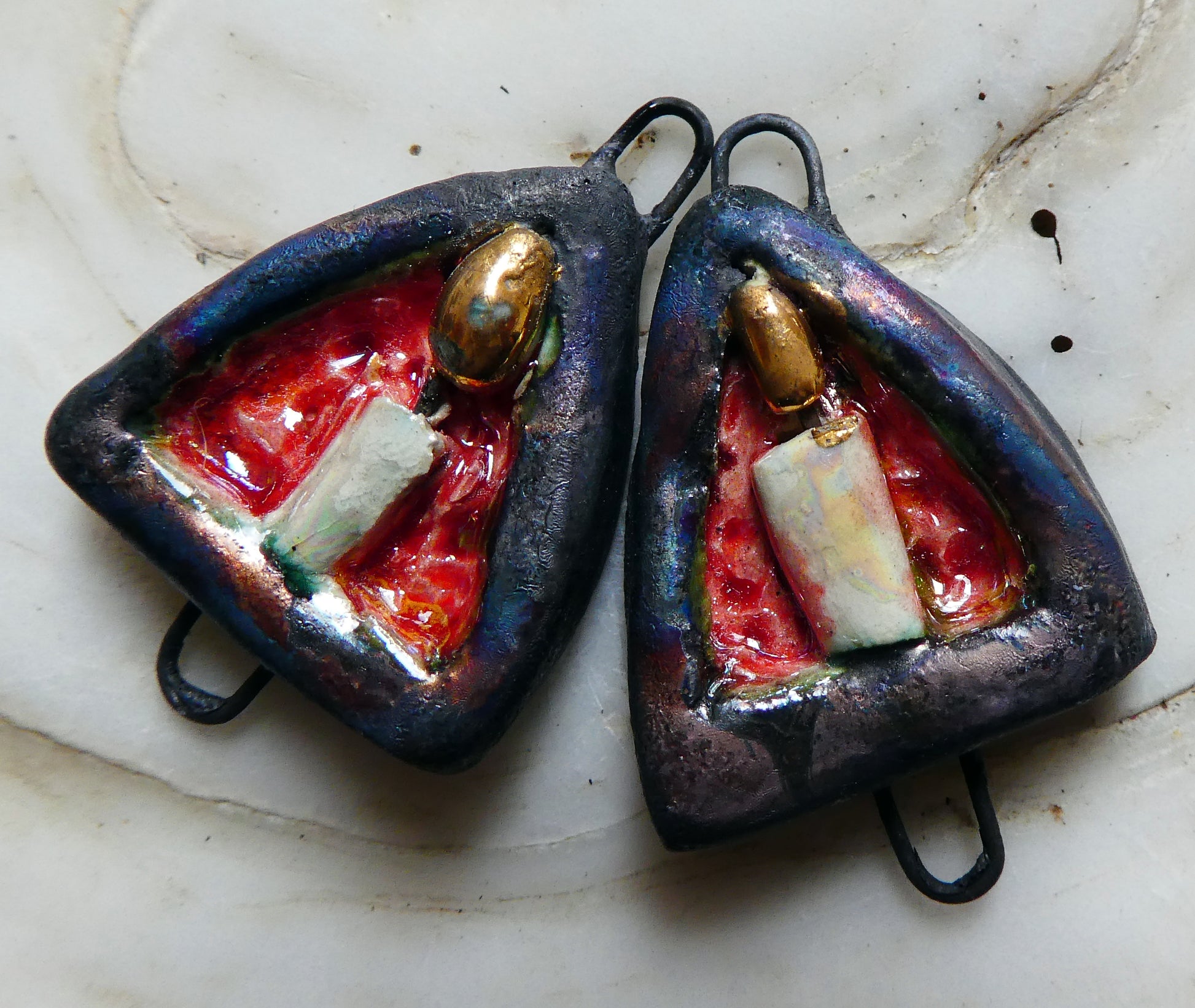 Ceramic Candle Arch Earring Connectors - Firecracker
