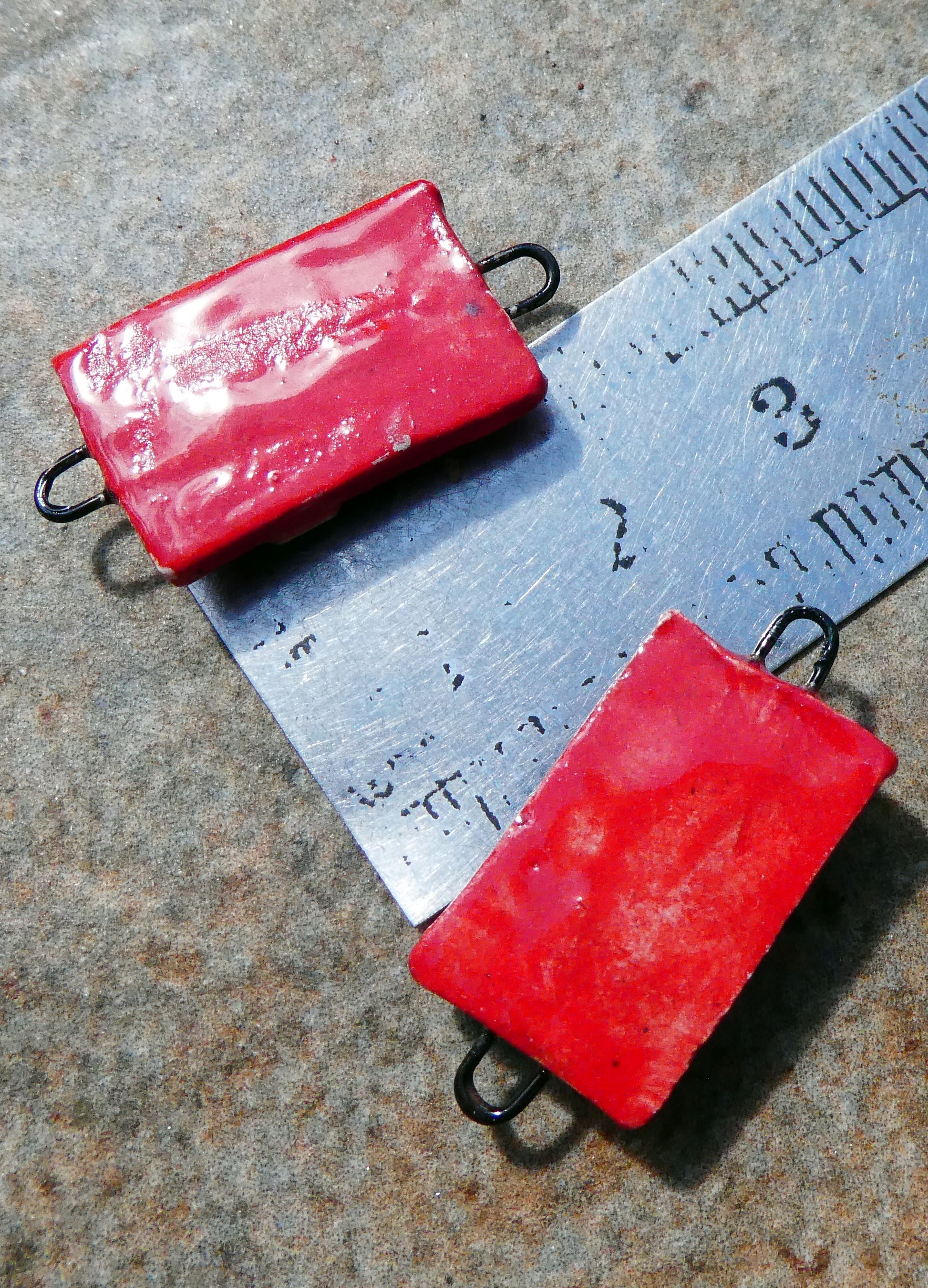 Hand formed in Earthstone and high fired. Fired again with Bronze clay, Pewter and Red glaze.