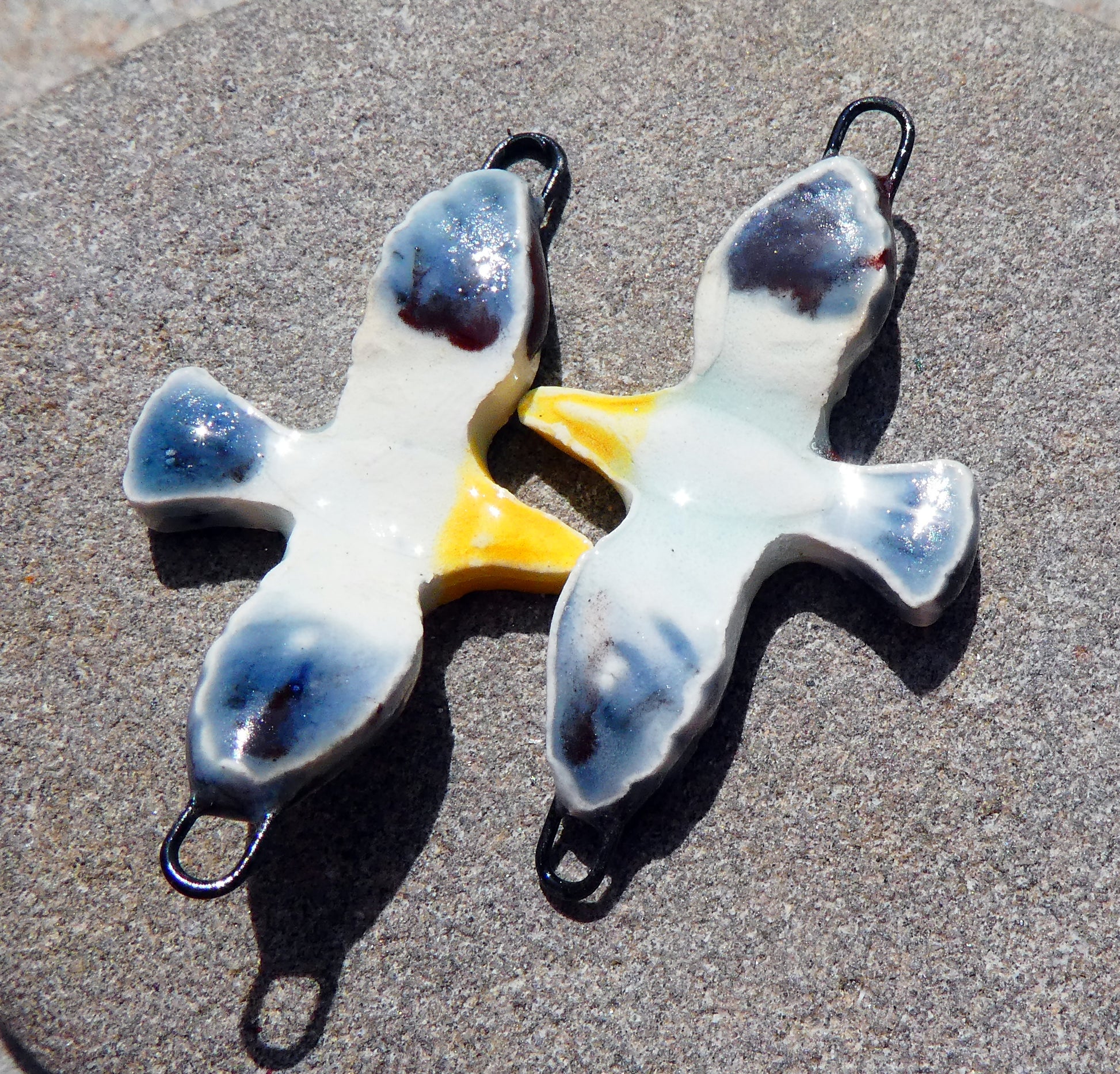 Hand formed in Earthstone and high fired. Then fired again with Dove grey, Saffron and Gloss glaze.