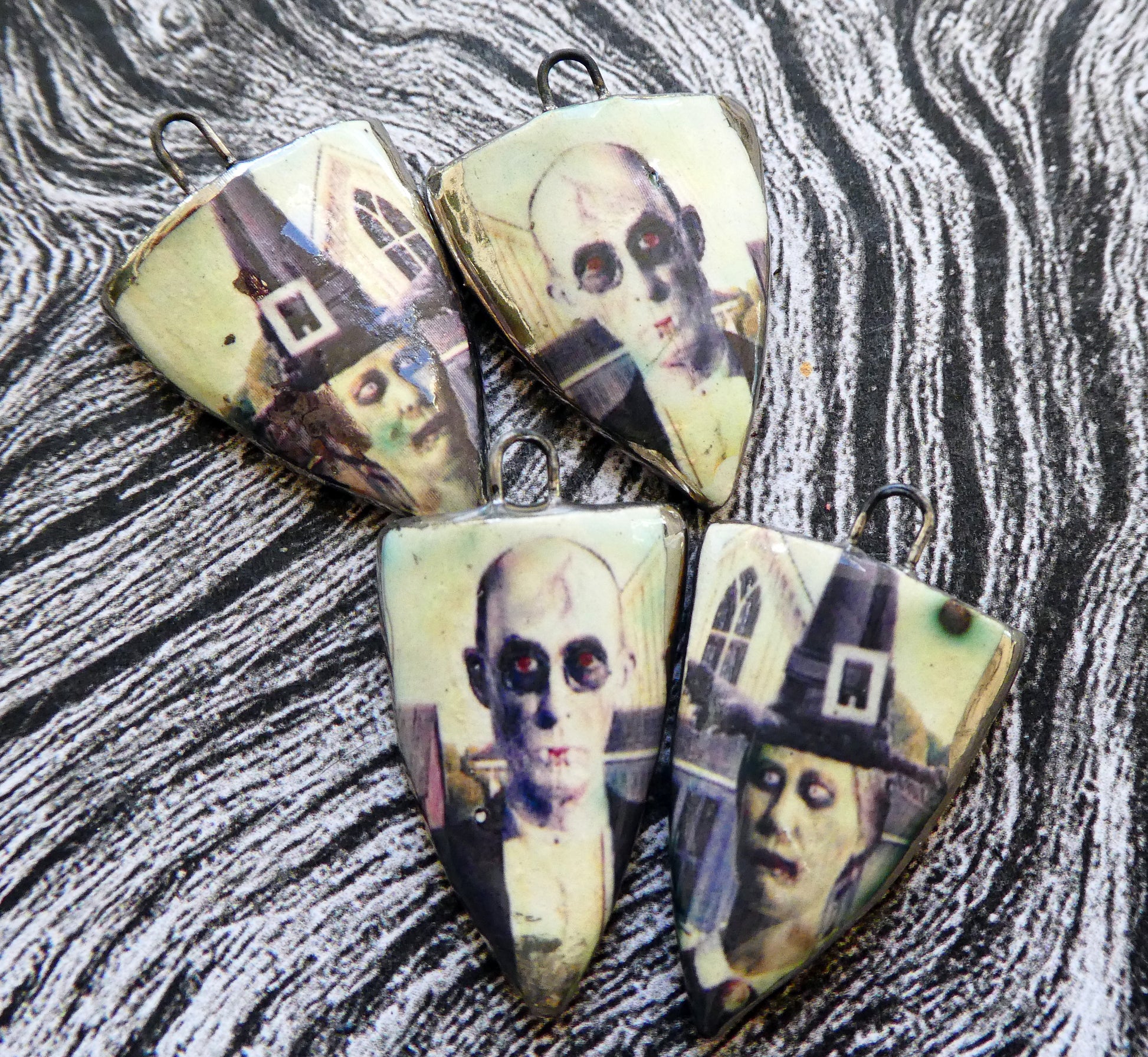 Ceramic Decal Shield Earring Charms - American Gothic #2