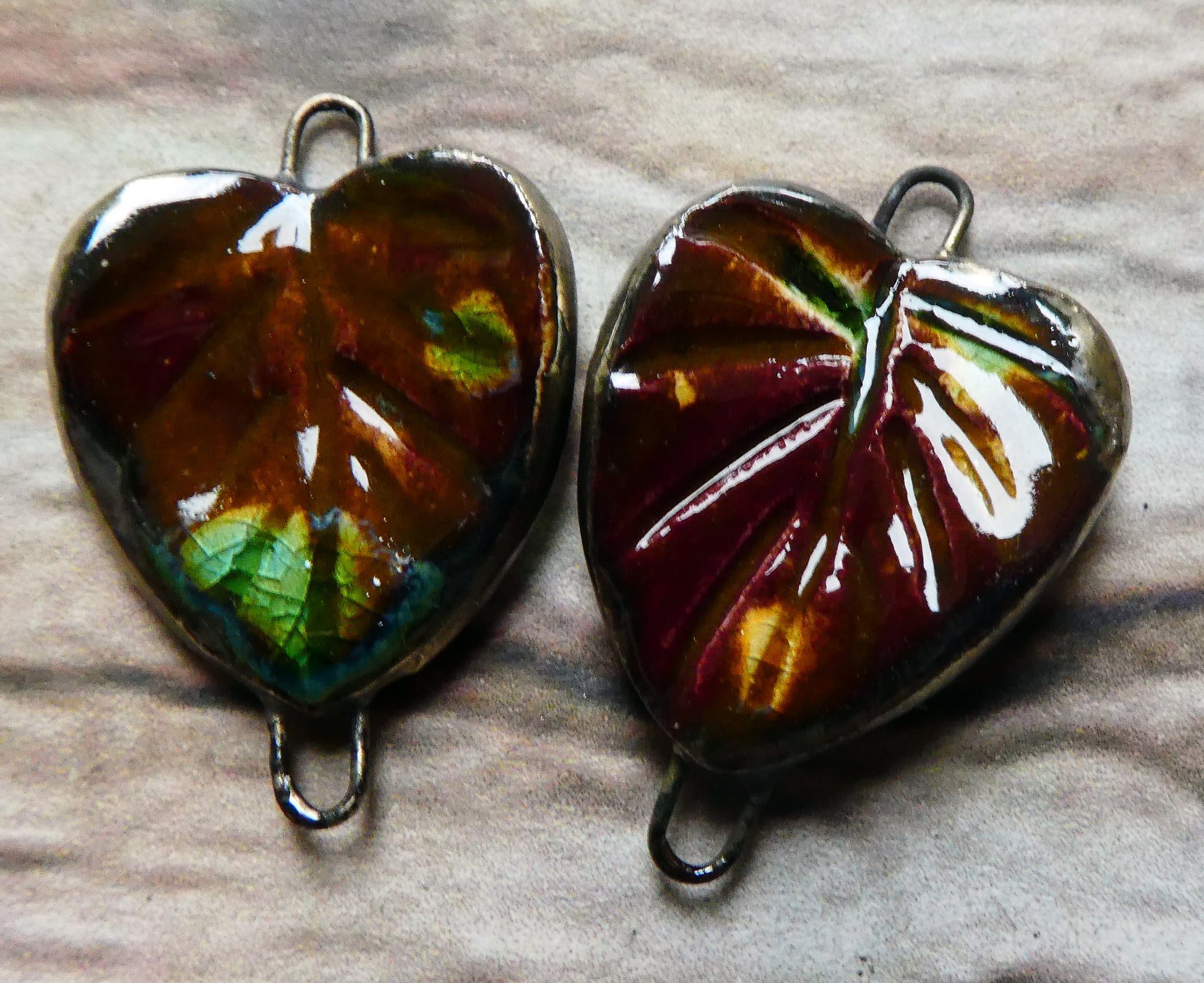 Ceramic Heart Shaped Leaf Connectors - Murano