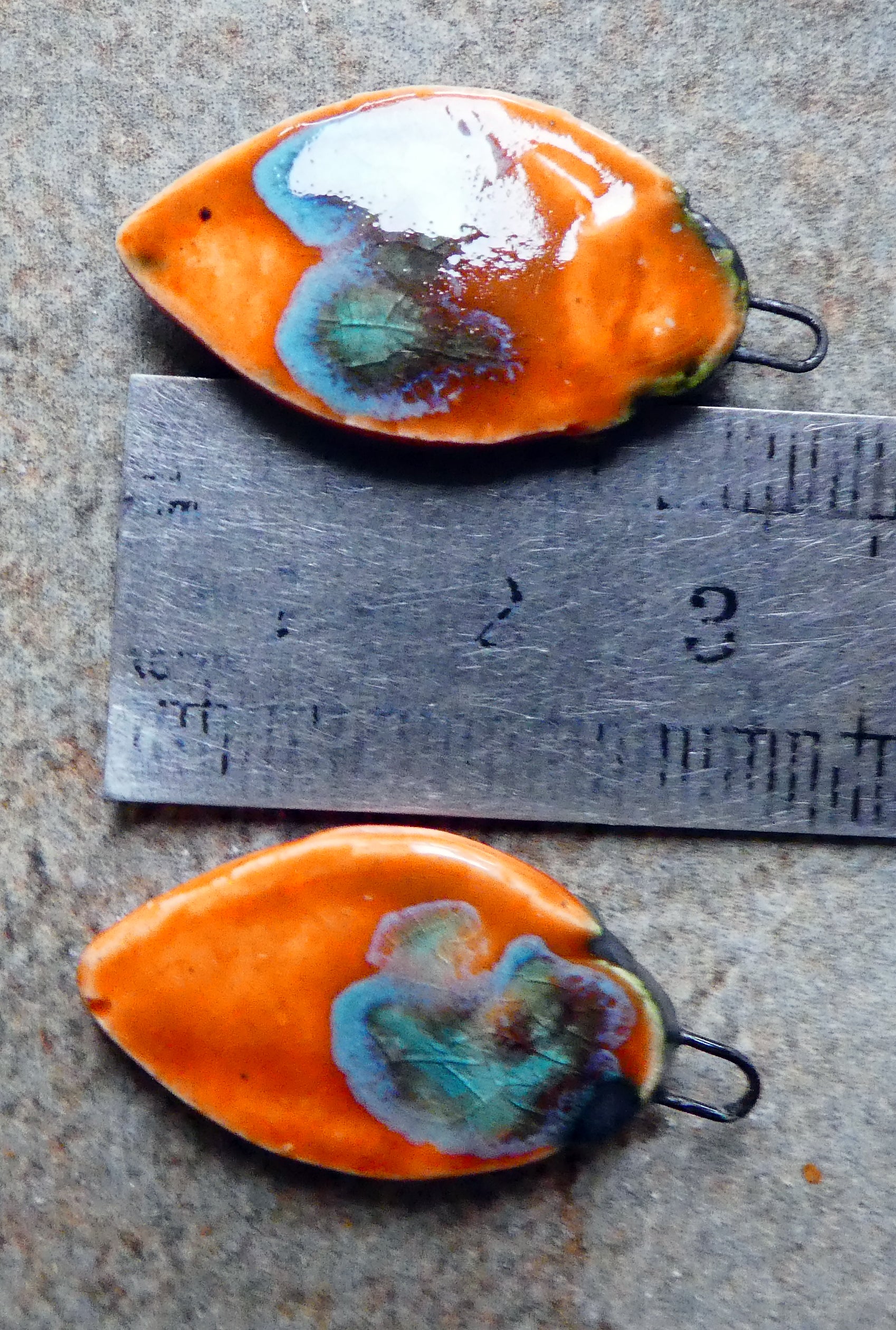 Hand formed in Earthstone and high fired. Then fired again with Bronze clay and Vermillion Sunburst glaze.