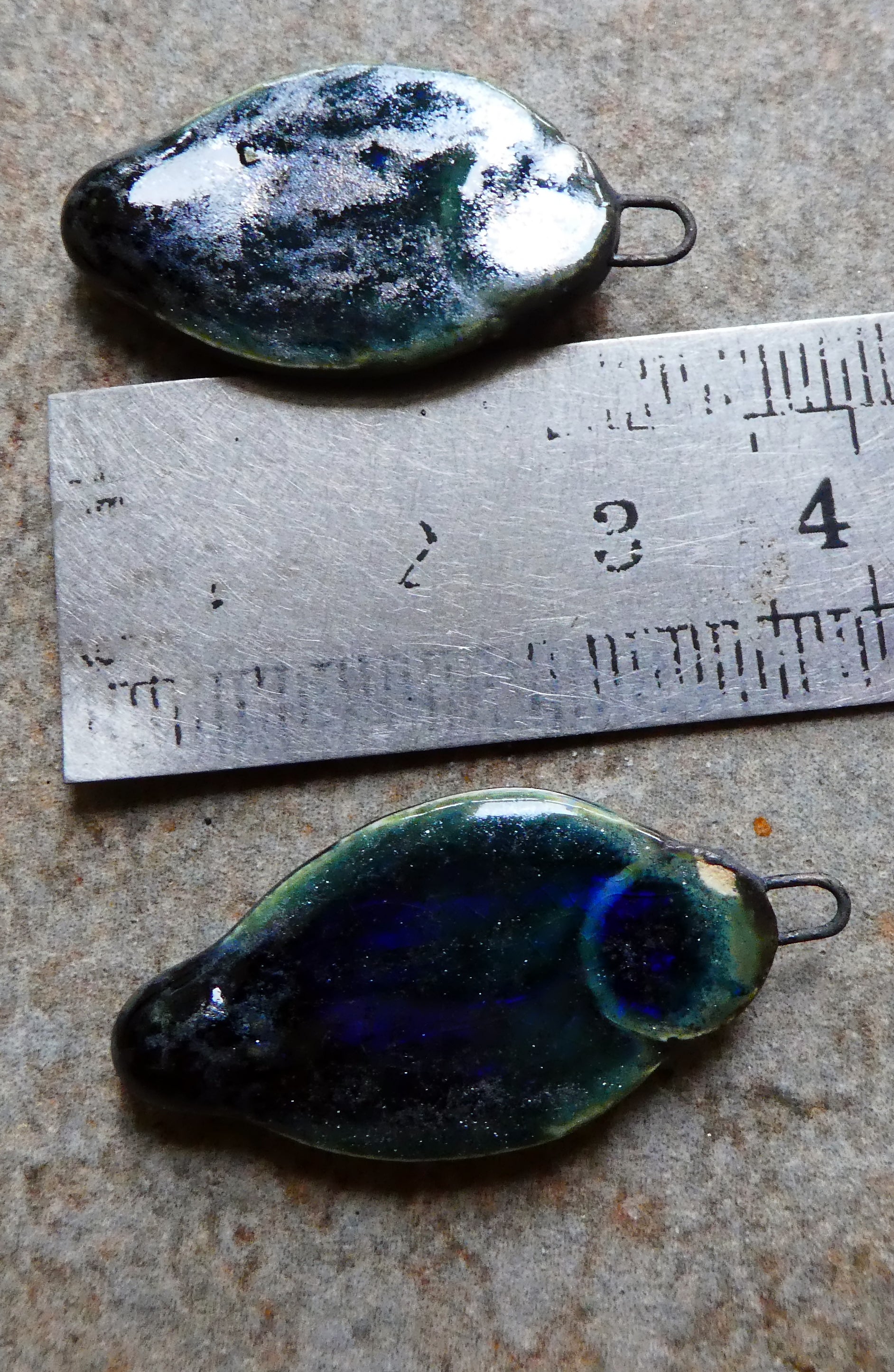 Hand formed in Earthstone and high fired. Then fired again with Bronze clay and Granada glaze.
