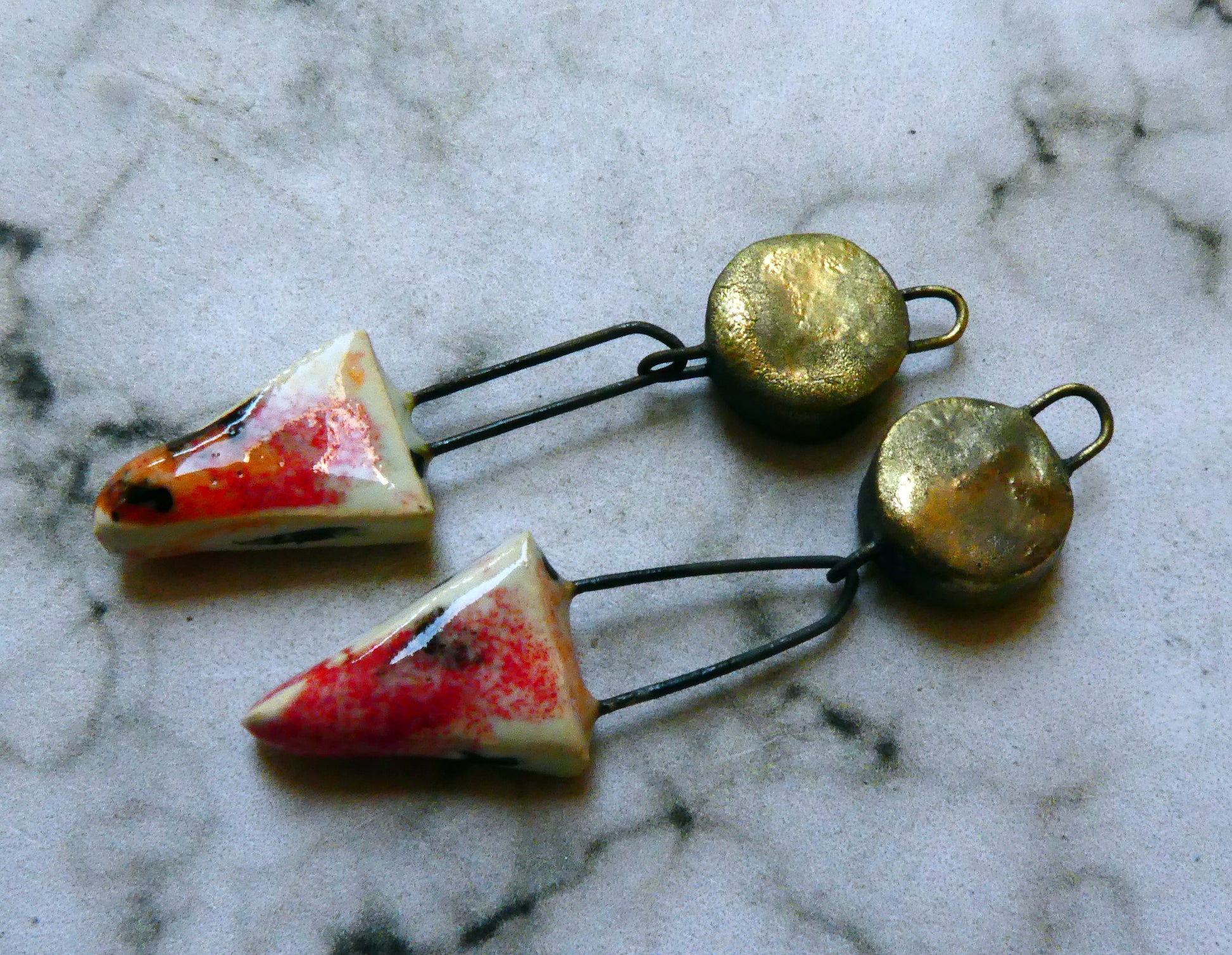Ceramic Disc and Triangle Earring Dangles - Poppy Fields
