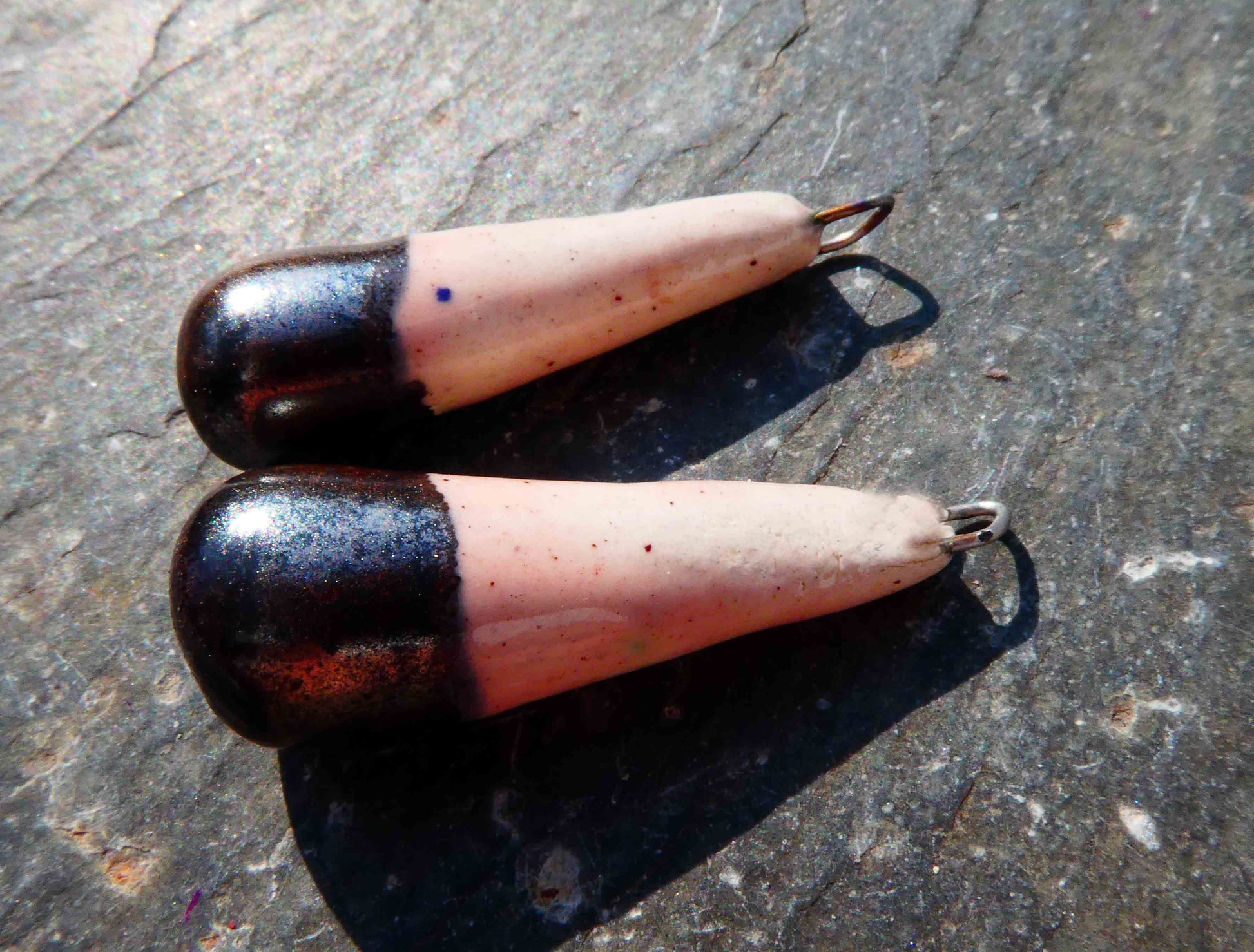 Hand formed in Earthstone, and fired with Morganite and Gloria glaze. 30mms in length, and very lightweight.