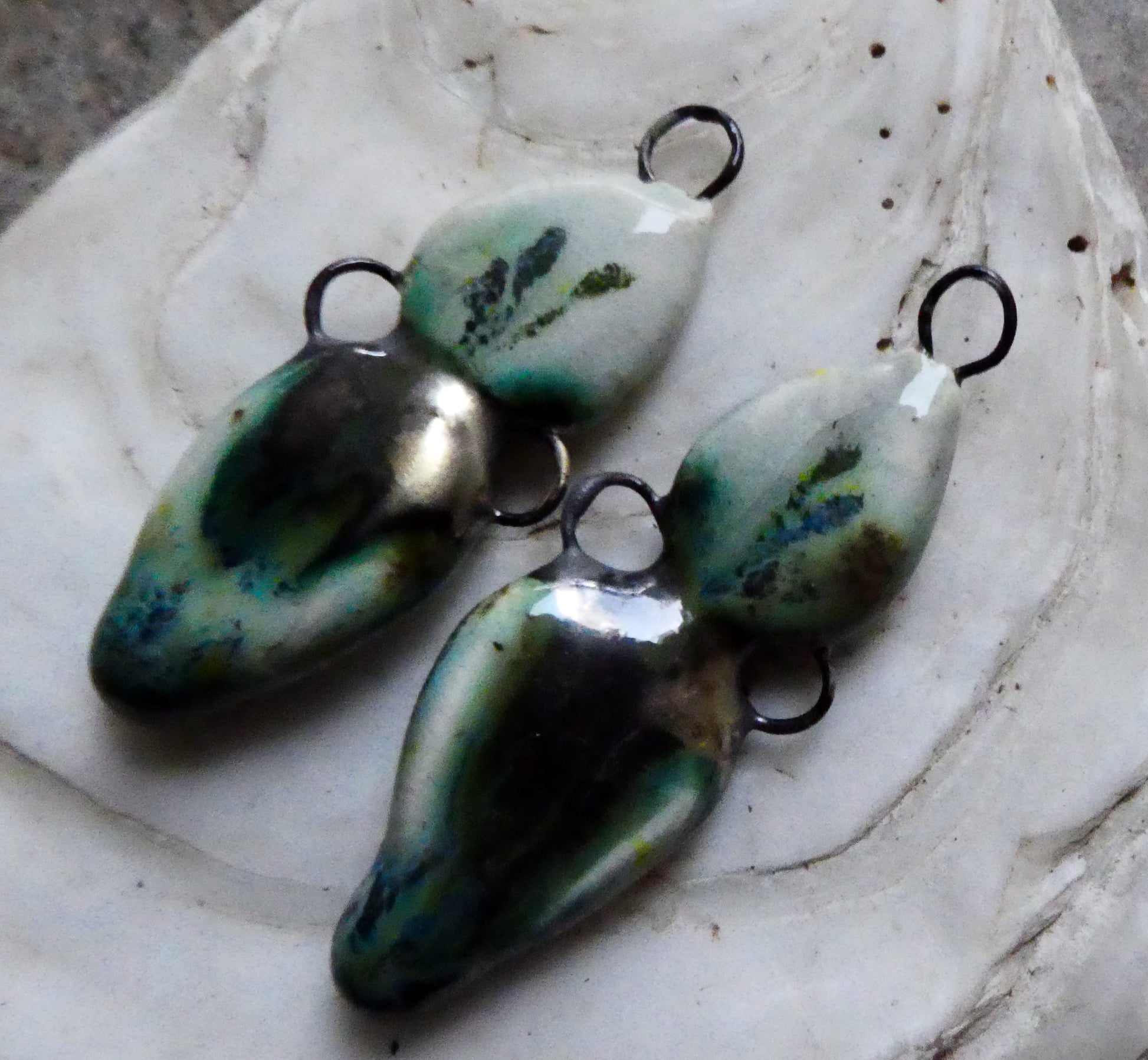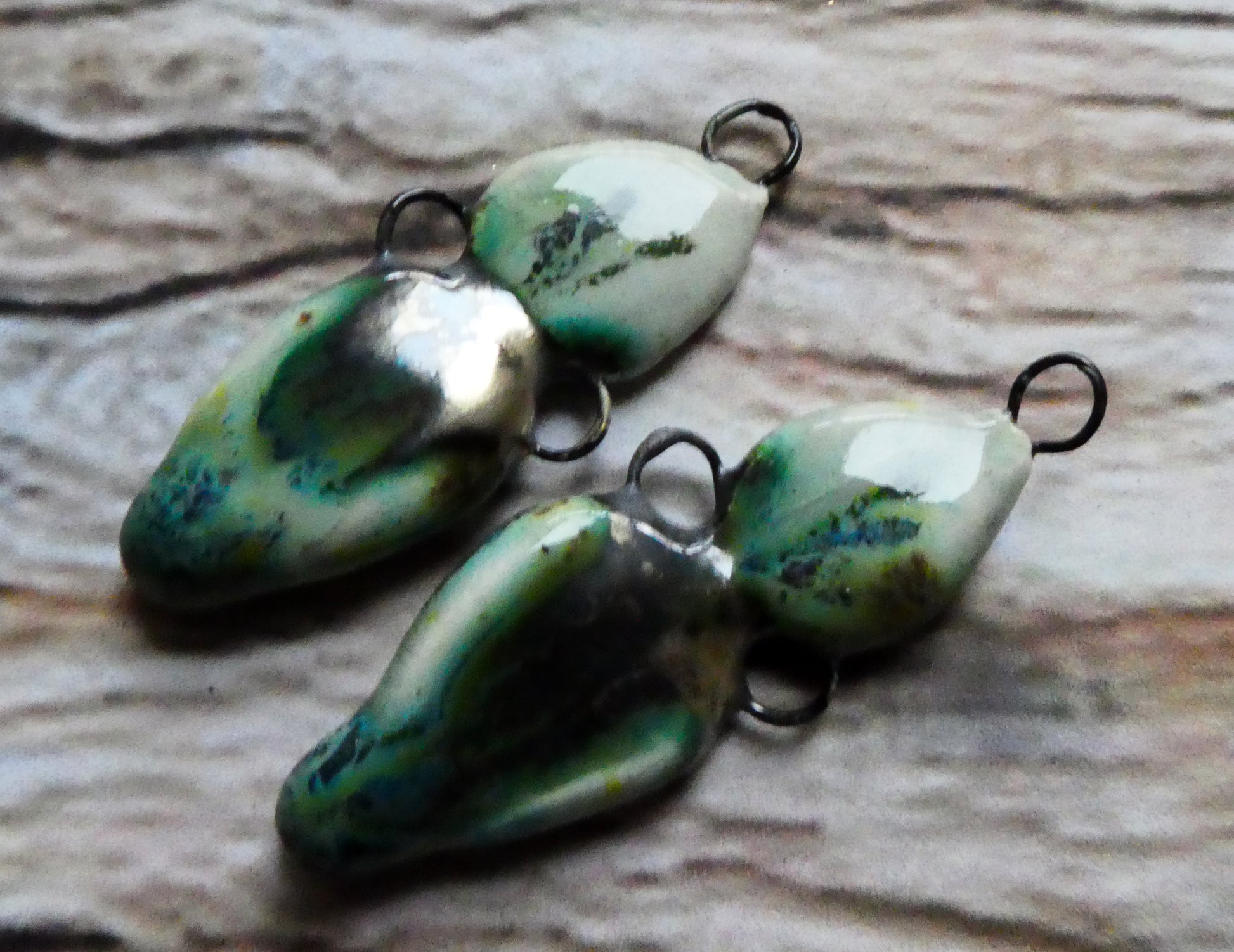 Ceramic Double Drop Earring Connectors - Herb Garden