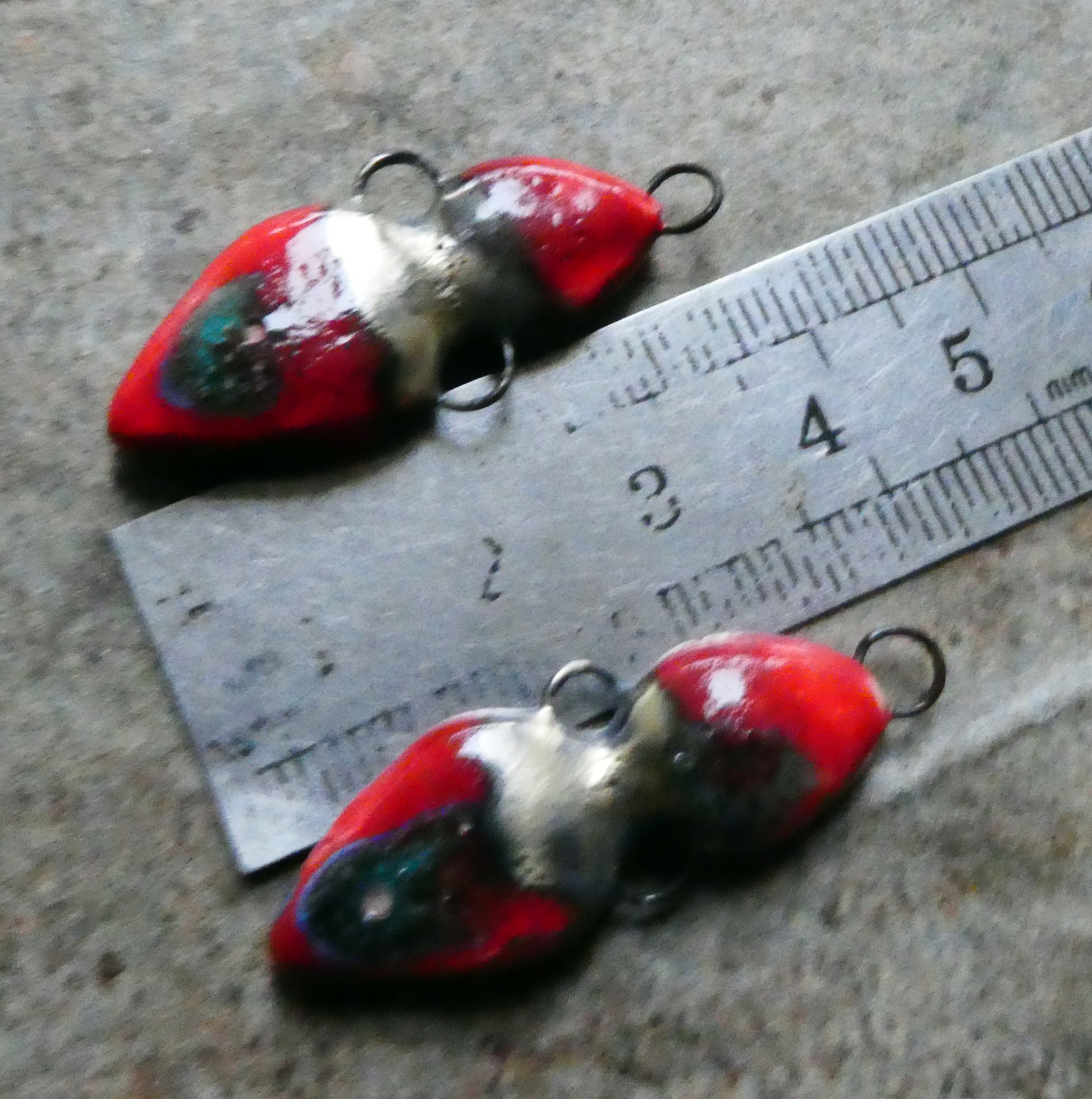 Hand formed in Earthstone and high fired. Then fired again with bronze clay and Ladybird glaze.