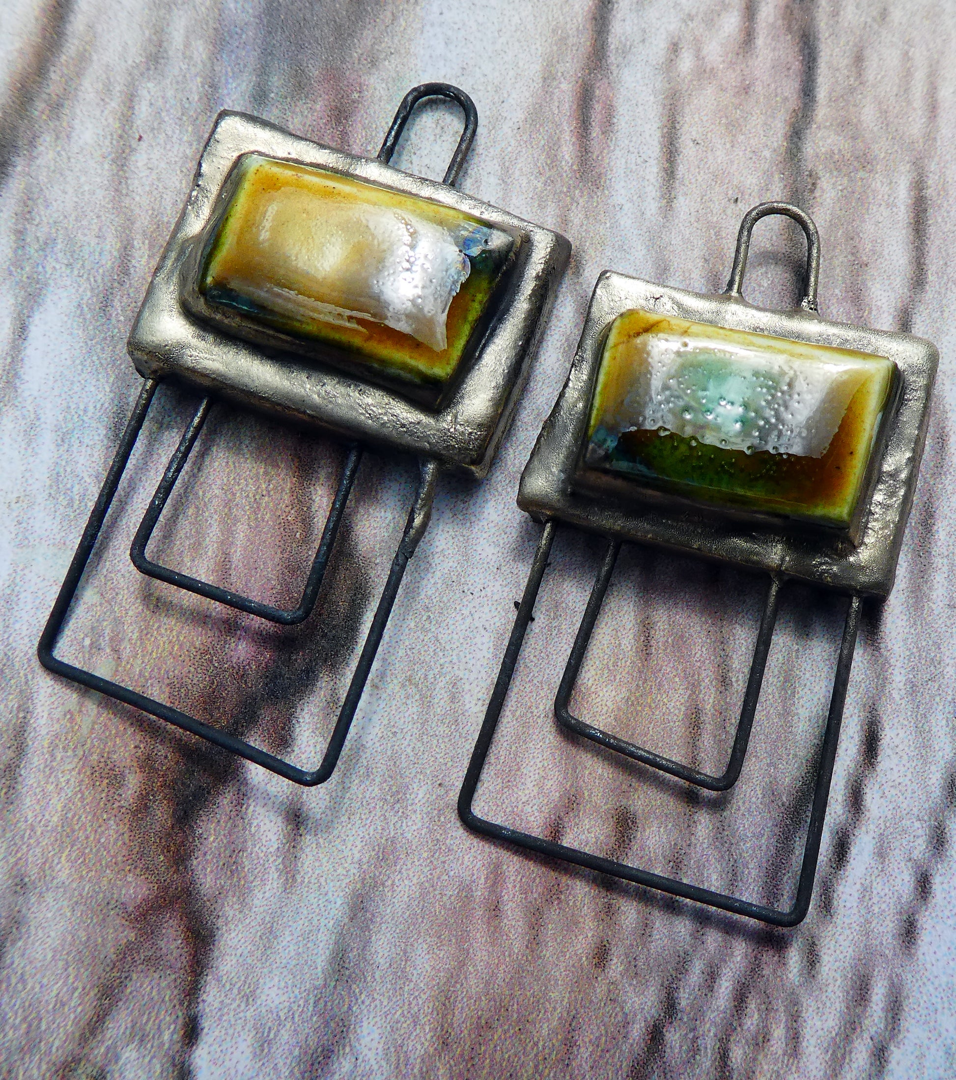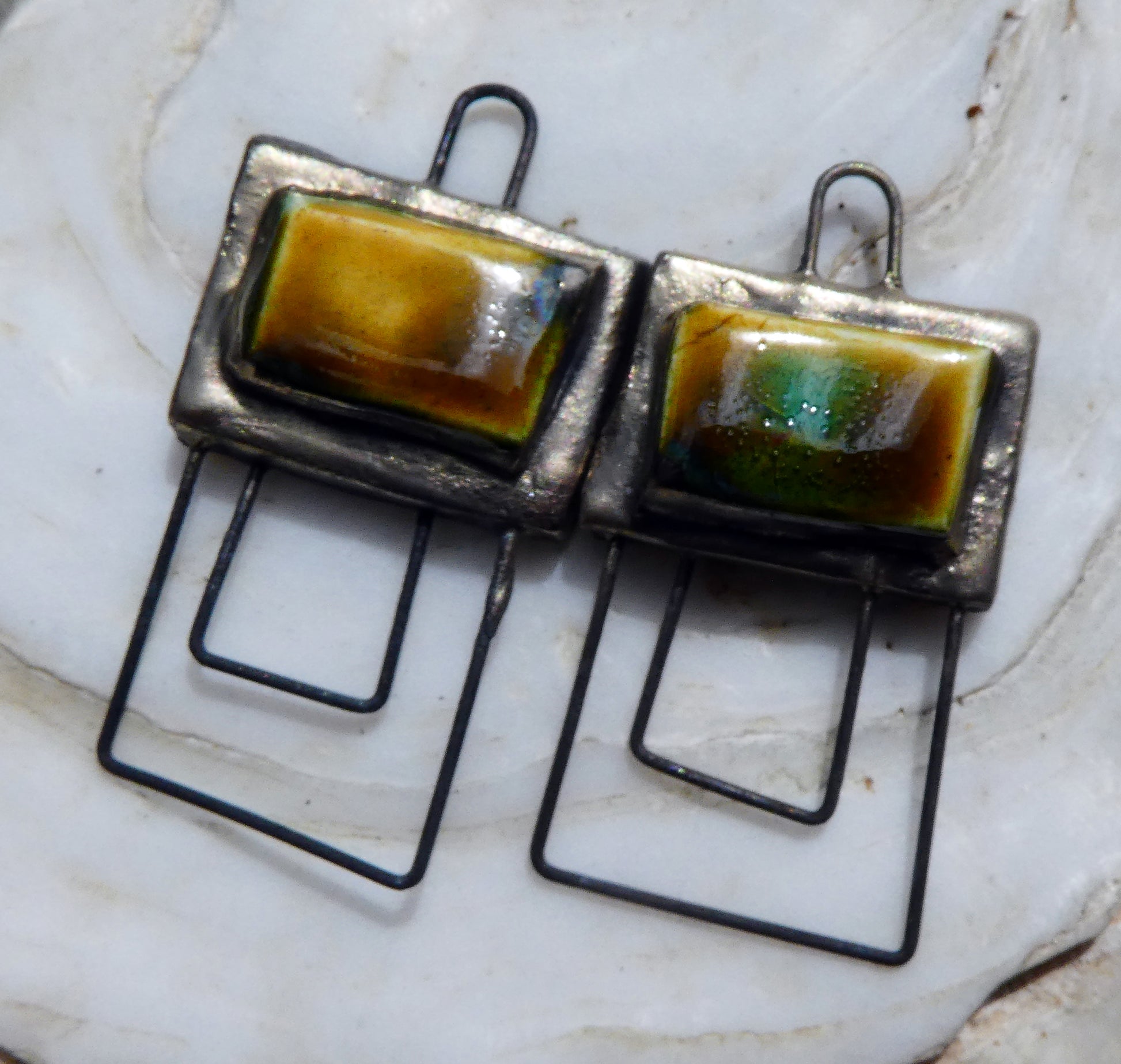 Hand formed in Earthstone and high fired. Then fired again with bronze clay and Billabong glaze.