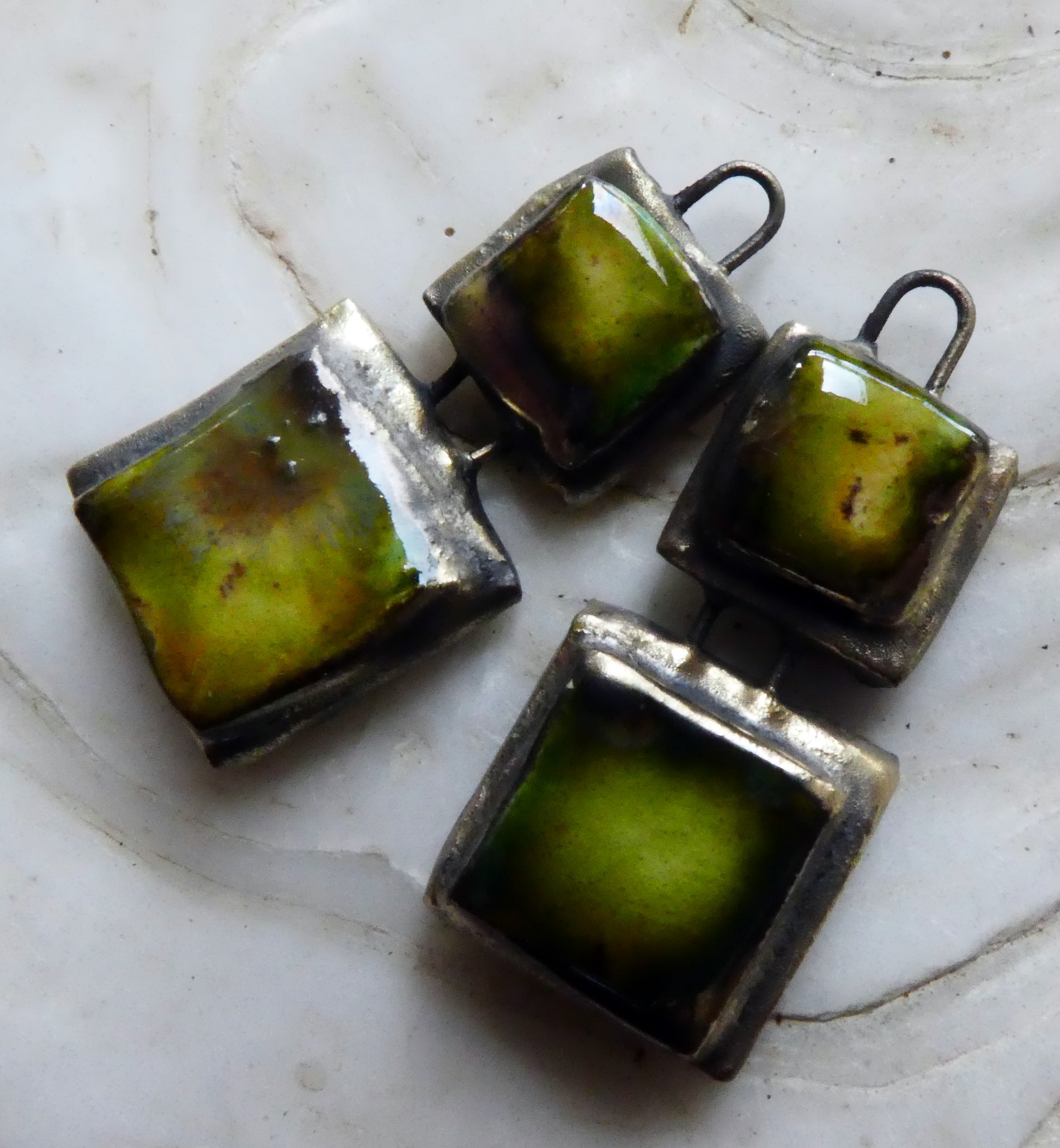 Hand formed in Earthstone, and high fired. Then fired again with bronze clay and Pagoda glaze.