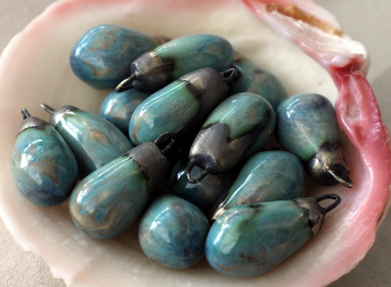 Ceramic Drops Earring Charms -Blue Agate