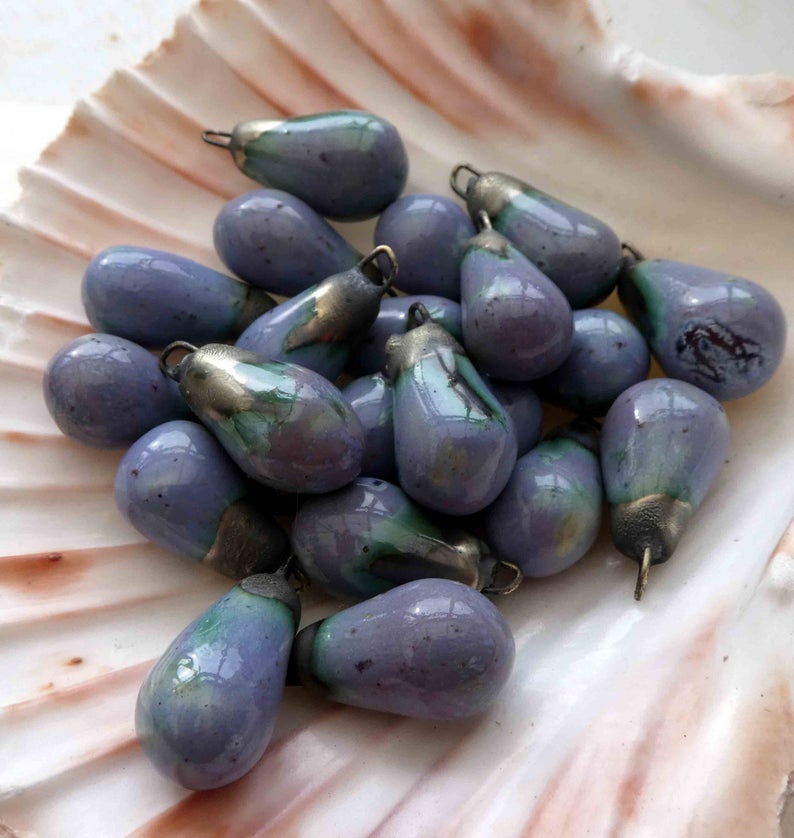 A pair of glazed drops on hoops. Hand formed in Southern ice Porcelain, and fired with Bronze clay, and Glacier Fire glaze. All slightly different, but roughly 20mms in length, and very lightweight. ©ScorchedEarthDesigns