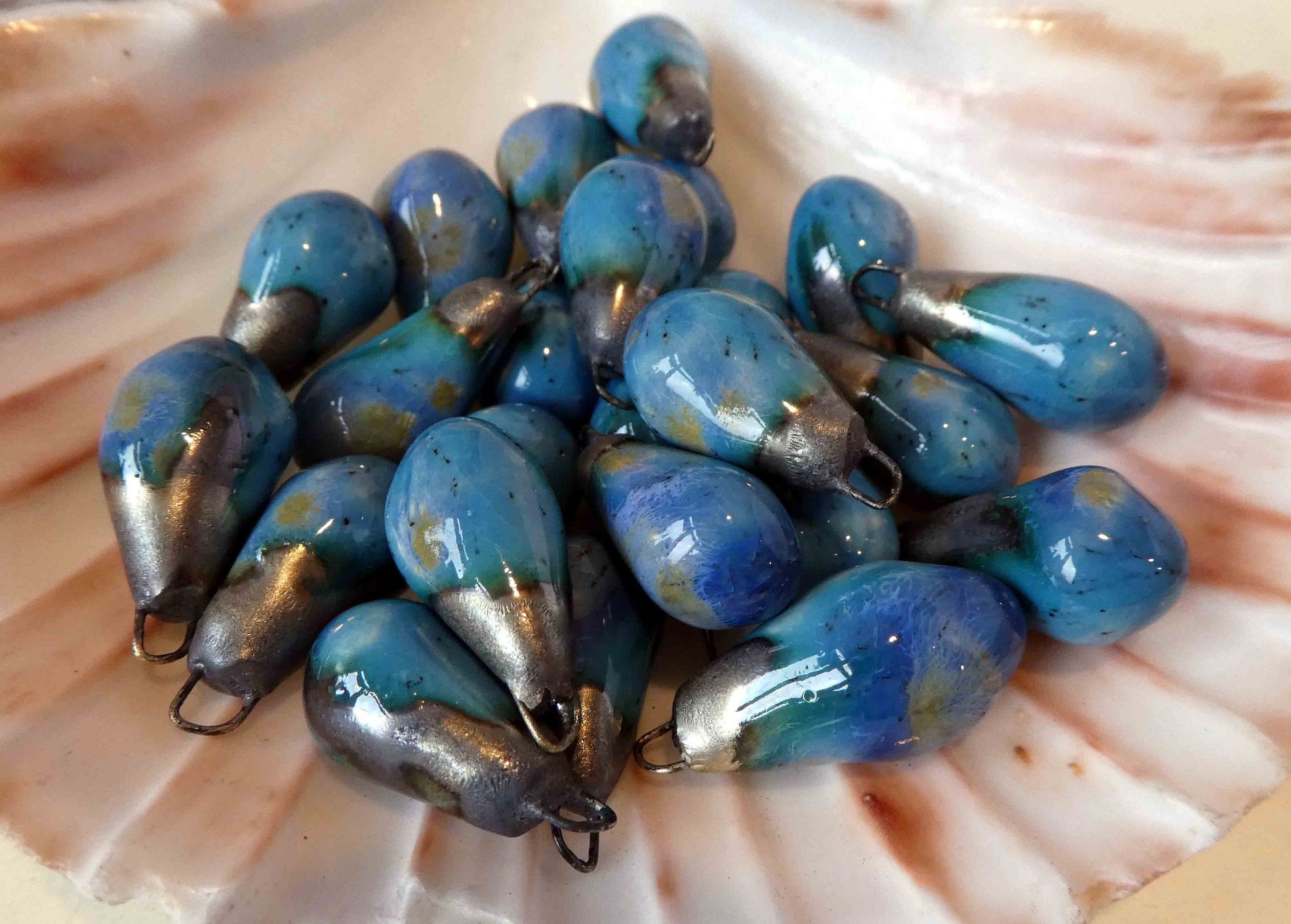 A pair of glazed droplets on hoops. Hand formed in Earthstone and fired with Tahiti Grape glaze. All slightly different, but roughly 20mms in length, plus the hoop. ©ScorchedEarthDesigns
