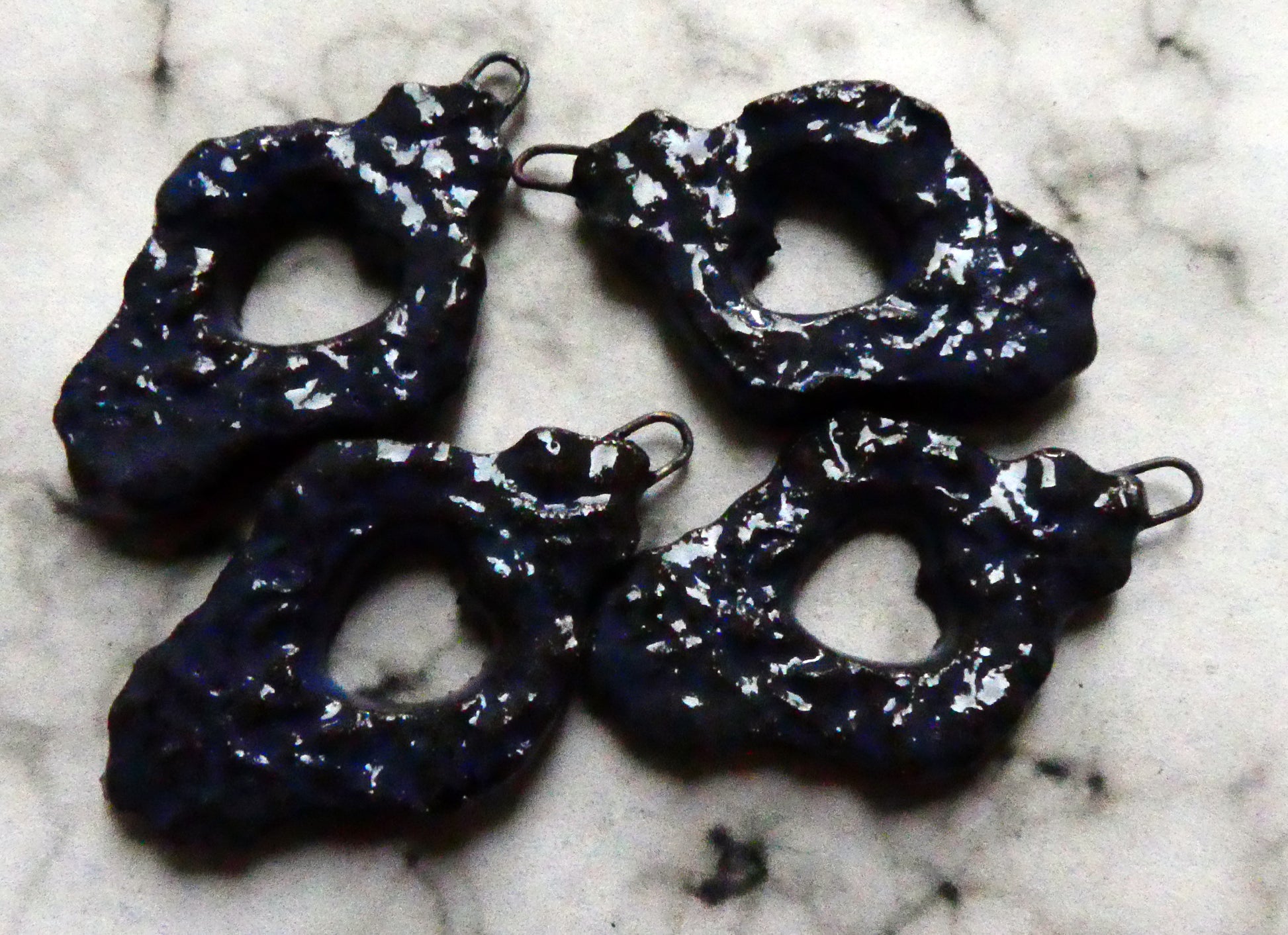 Ceramic Filligree Earring Charms - Pueblo Purple Black