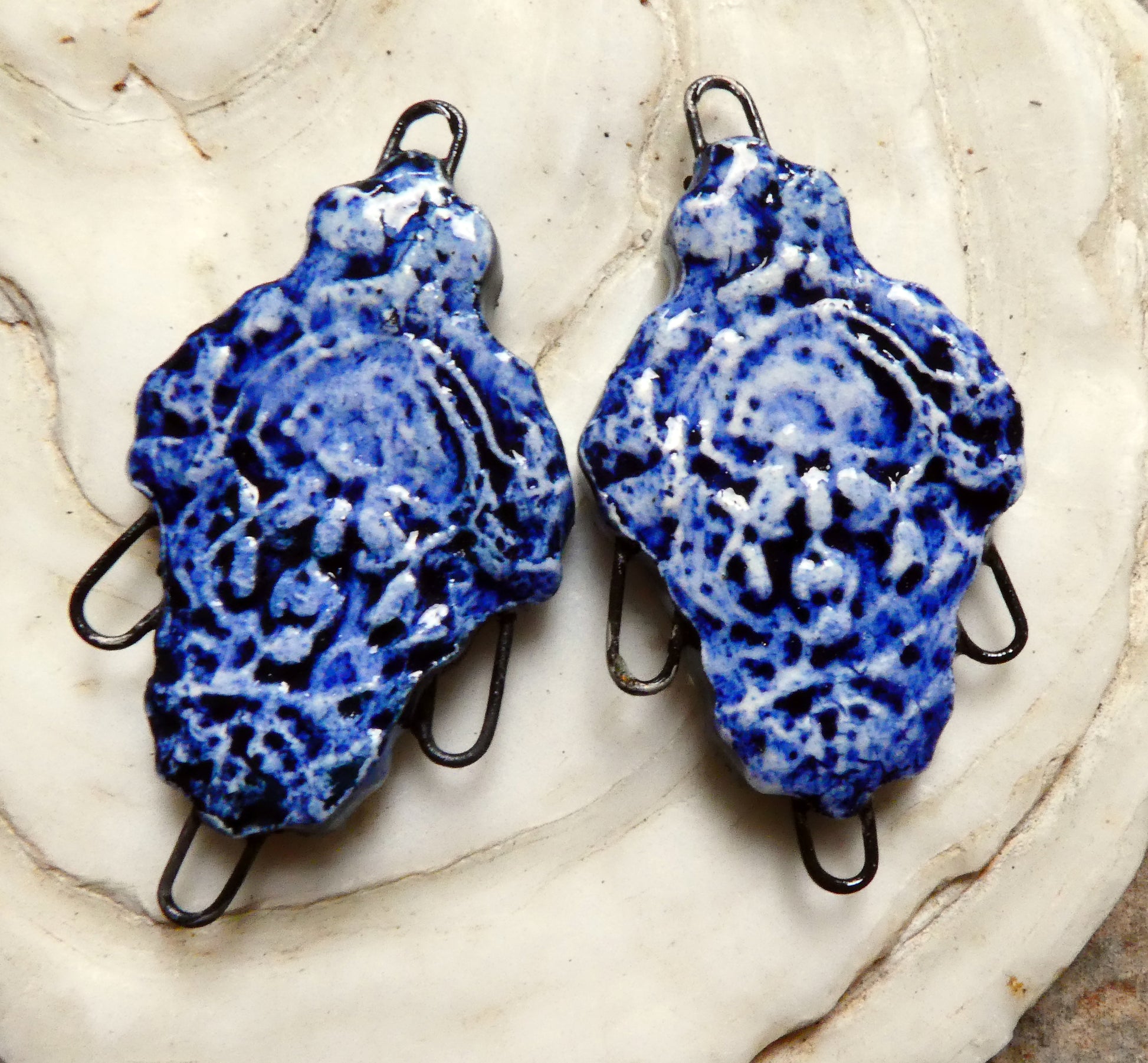 Ceramic Filligree Earring Connectors - Midnight Blue