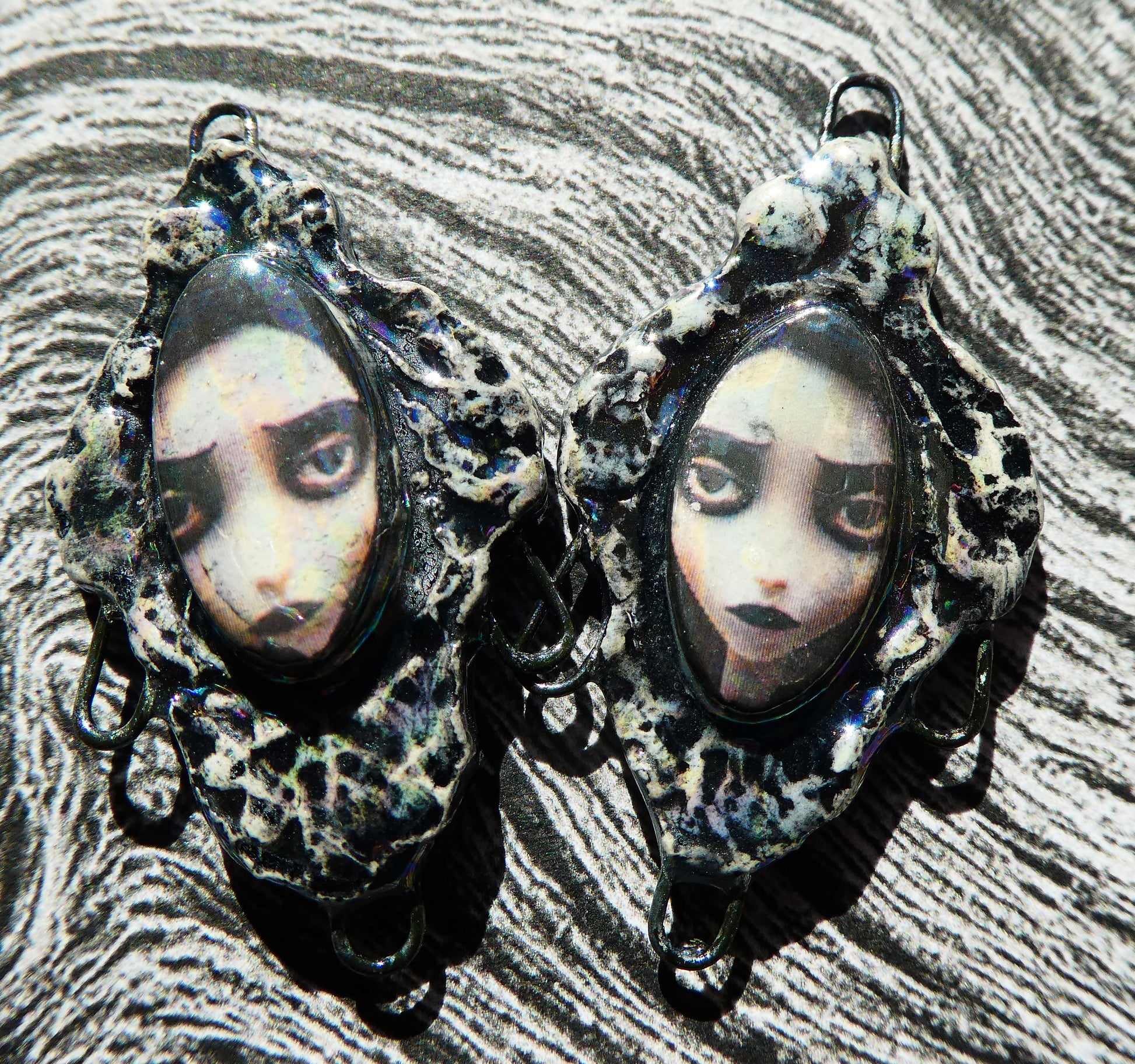 A pair of spooky girl charms.