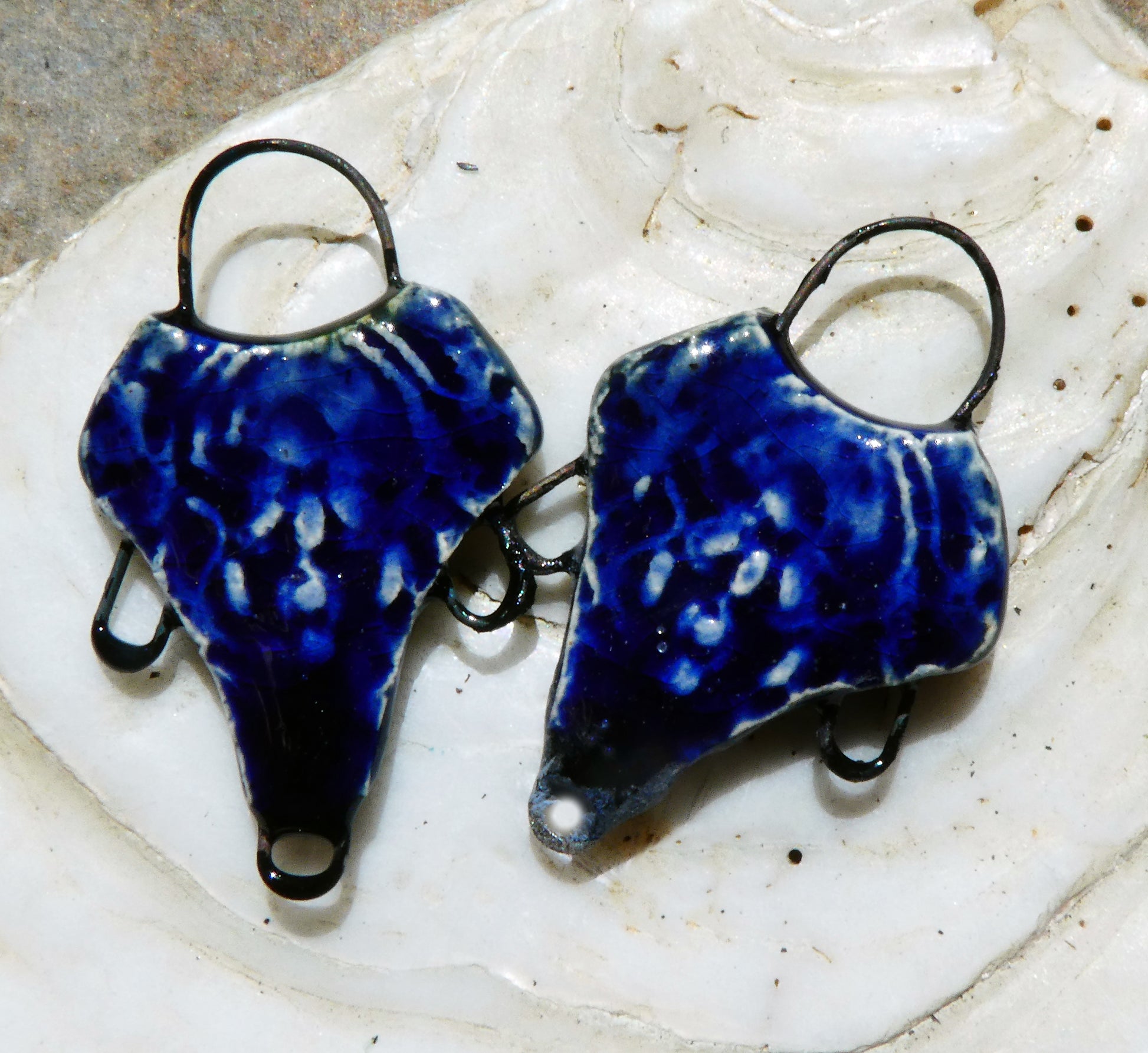 Ceramic Filligree Three Hoop Earring Connectors - Mirror Blue