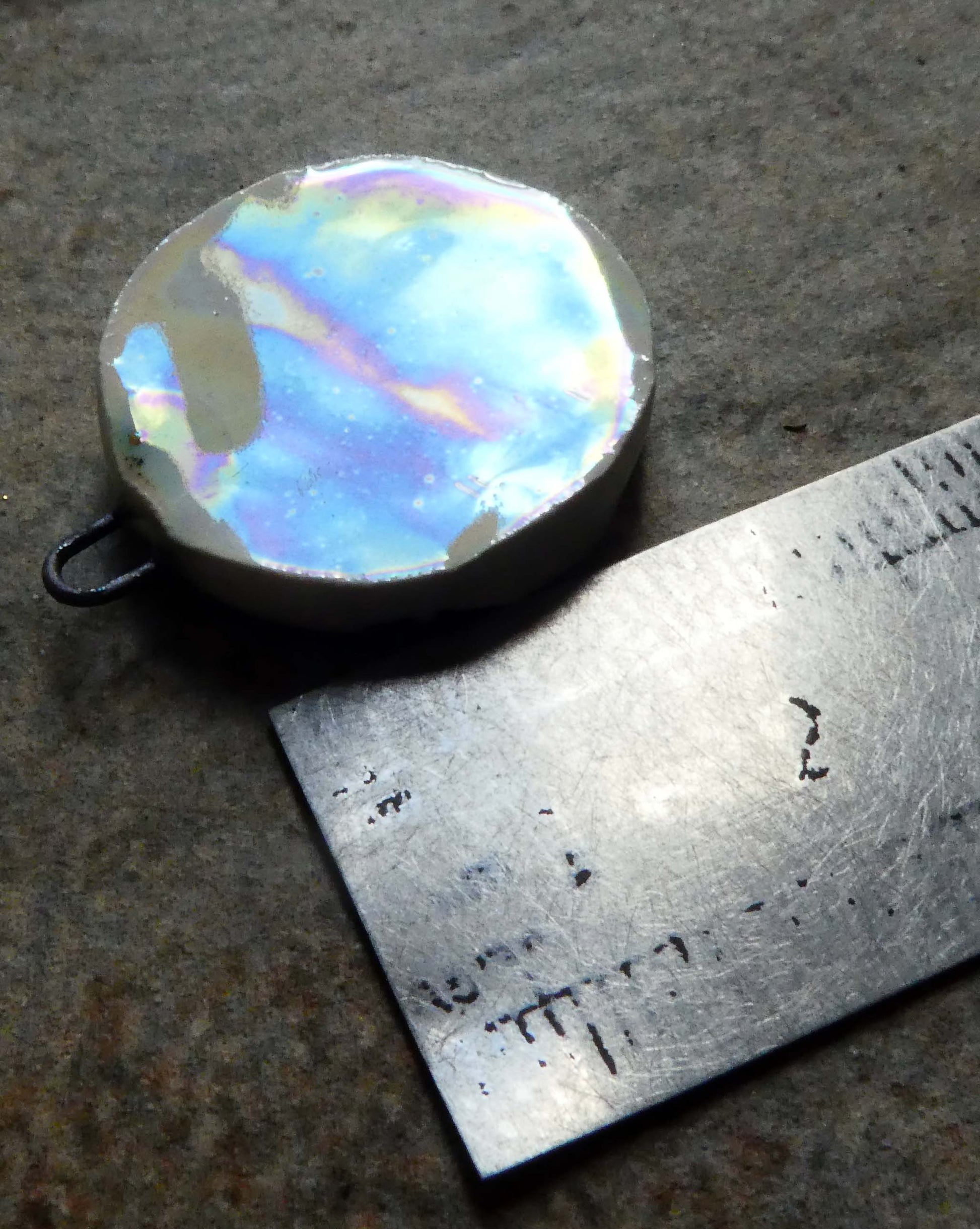 Hand formed in Porcelain and high fired. Then fired again with Glozz glaze. Applied with Mother of Pearl lustre, and fired once more.