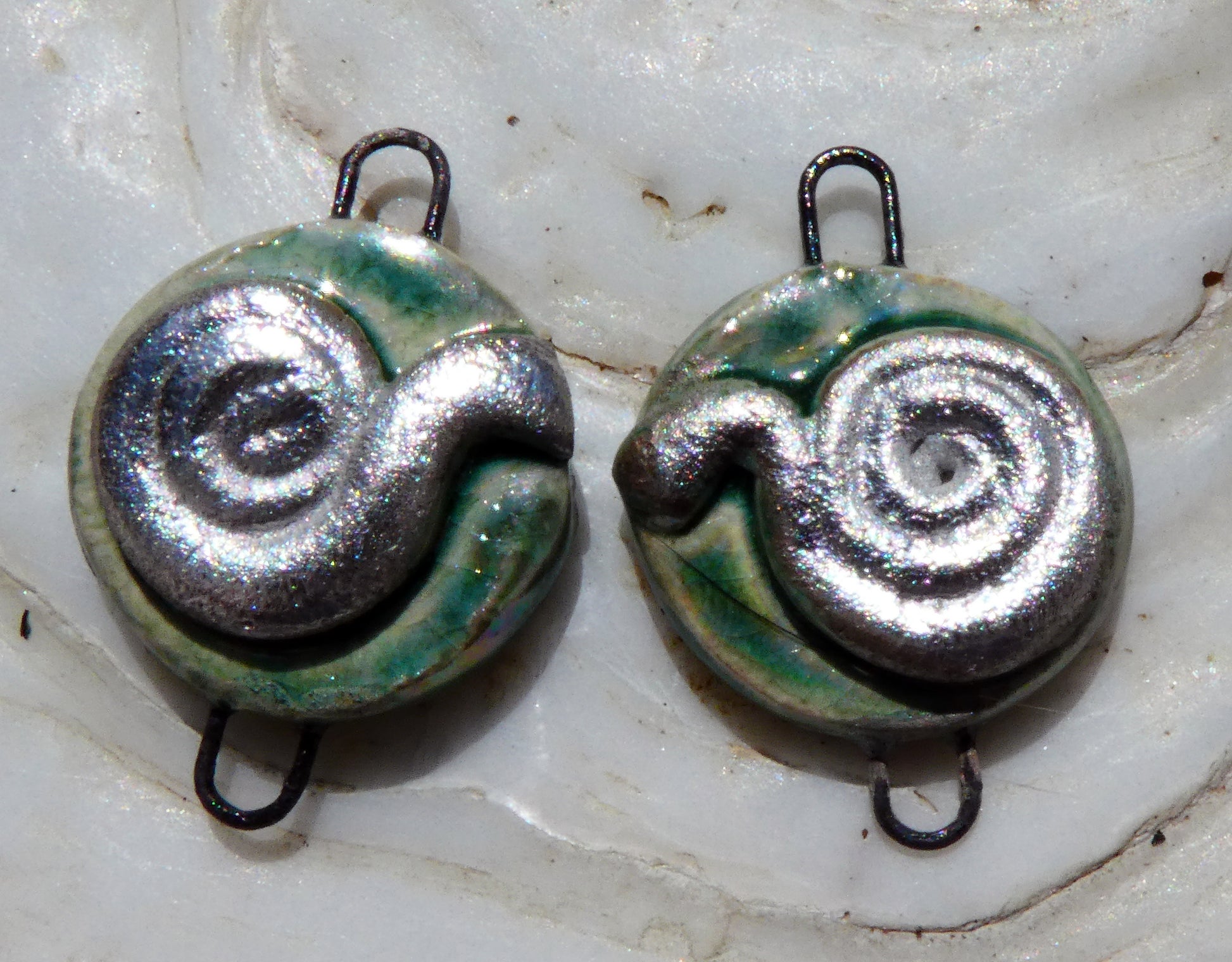 Ceramic Moulded Wave Swirl Disc Connectors - Topaz