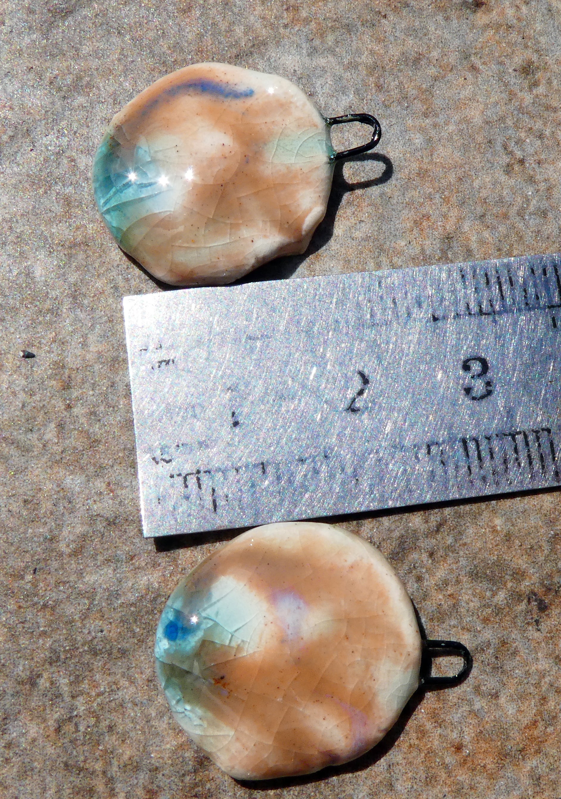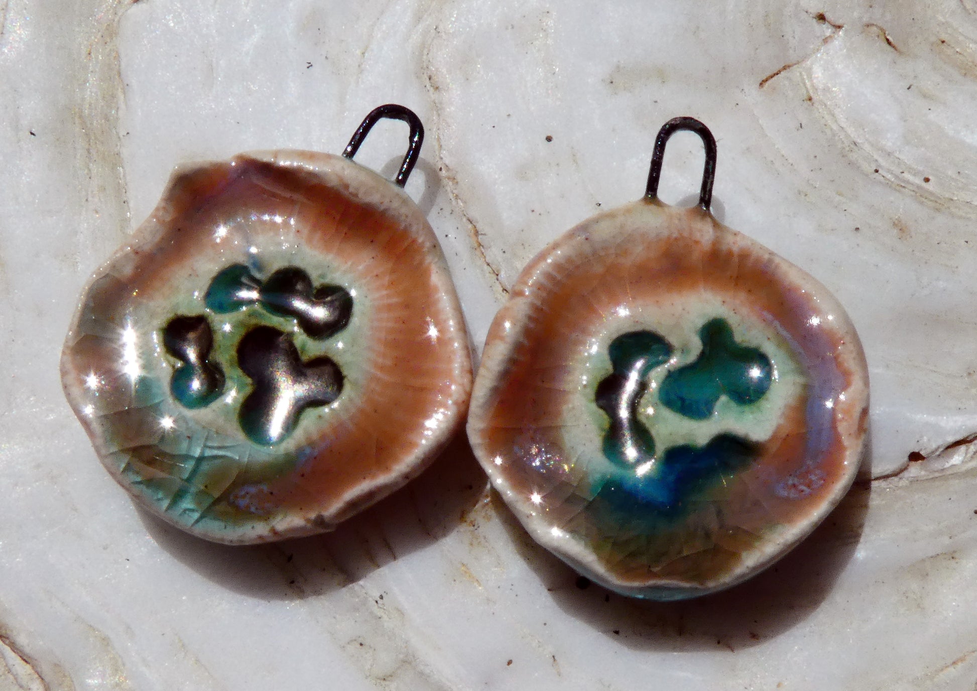 A pair of flat flower charms.