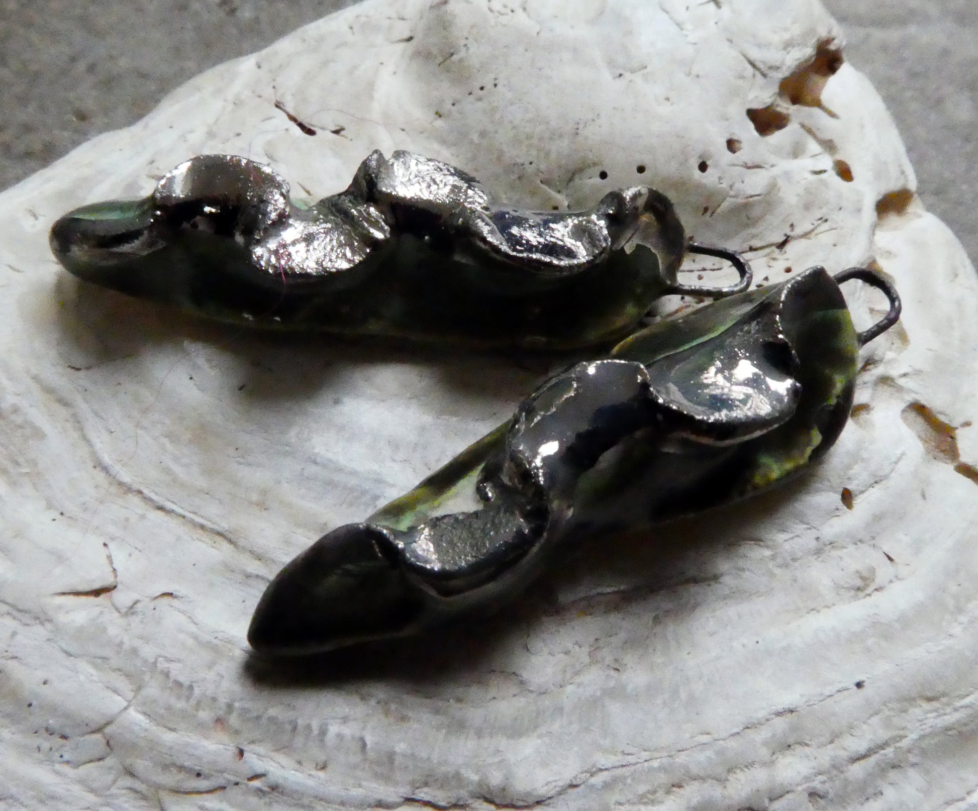 Hand formed in Earthstone and high fired. Then fired again with Supernova and Gloss glaze. Applied with Platinum Lustre, and fired once more.