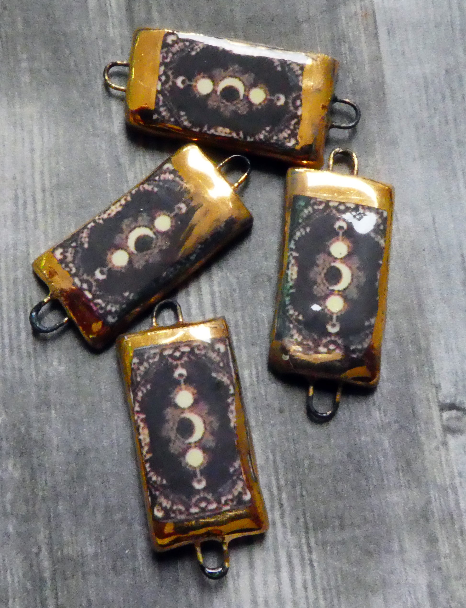 Ceramic Hex Symbol Decal Tablet Earring Connectors #3
