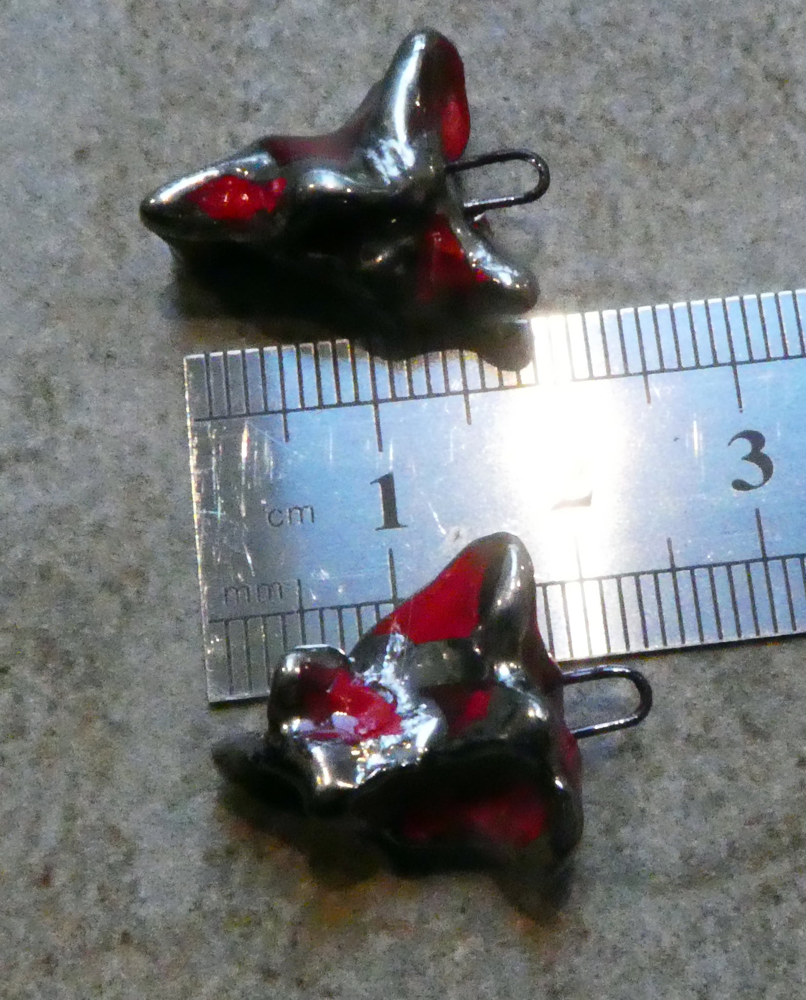 A pair of pinched heart charms.