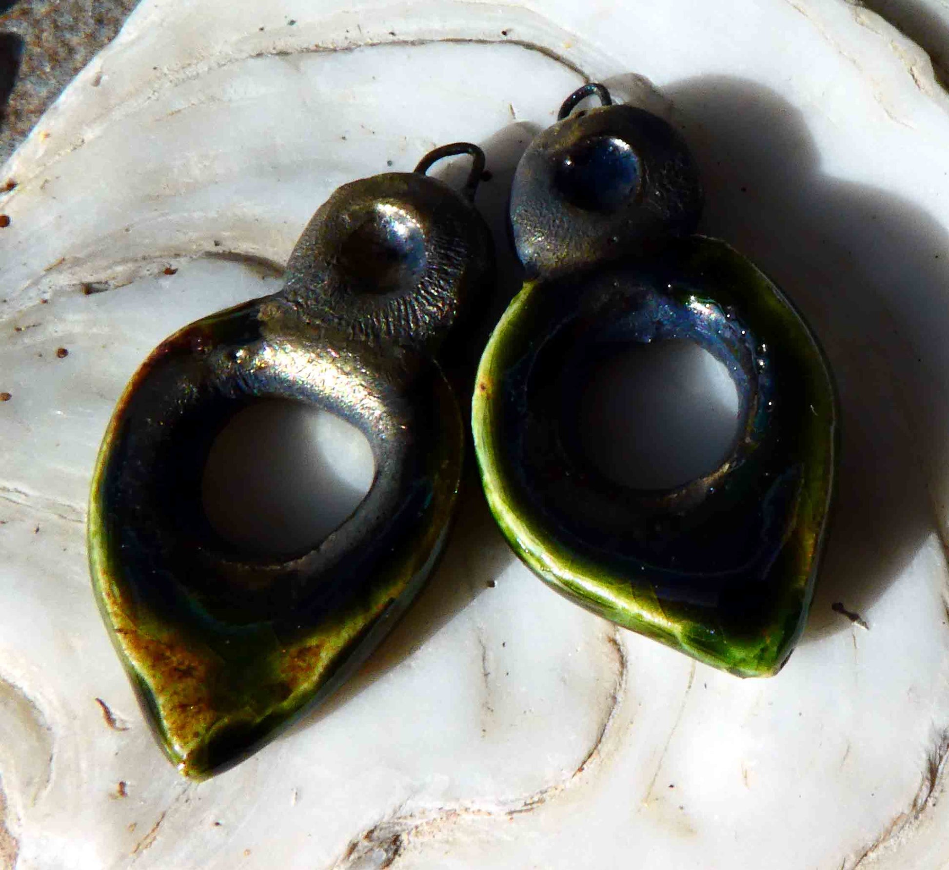 Ceramic Hoopy Dangles -Olive