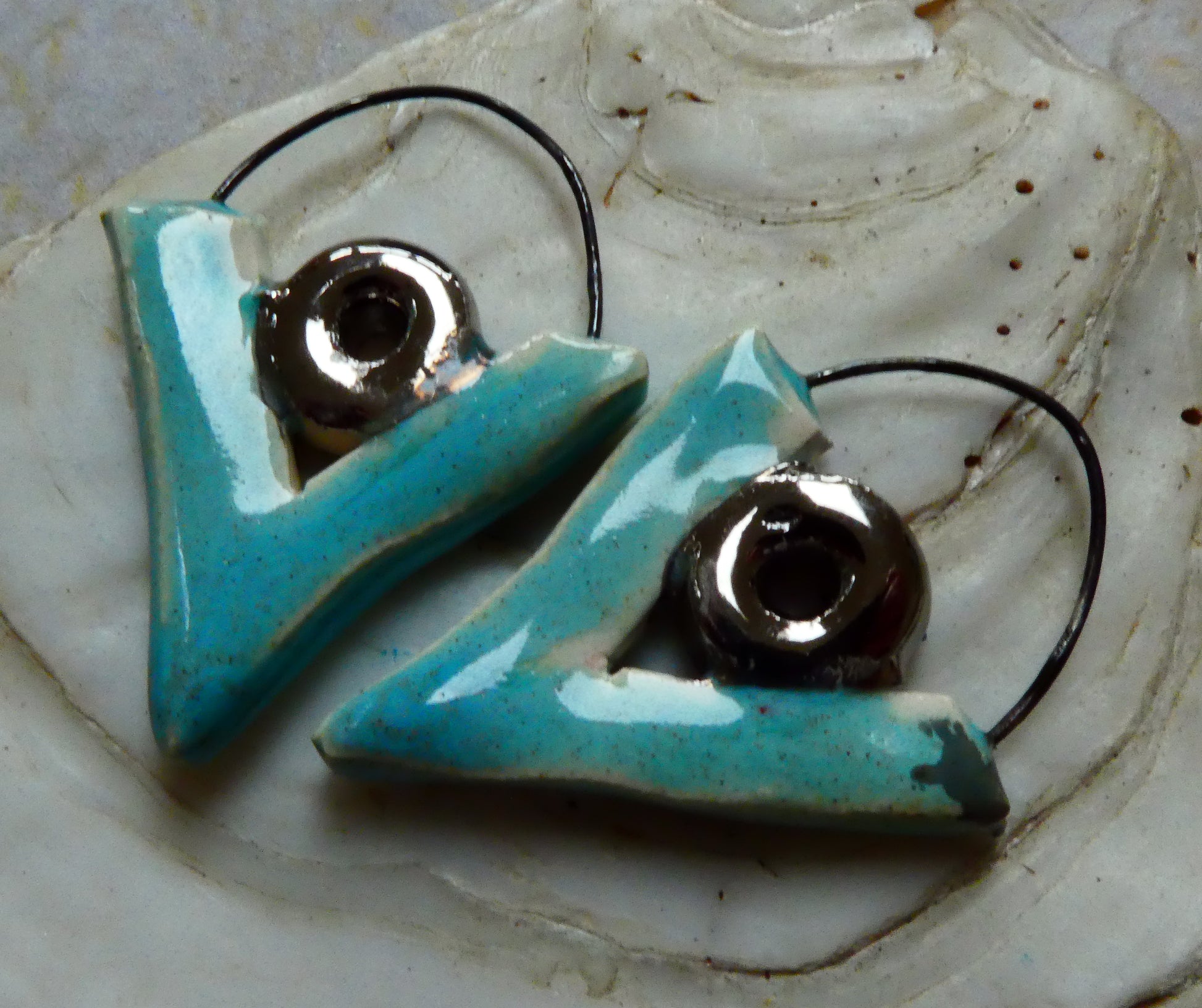 Ceramic Chevron and Disc Earring Charms - Larimar