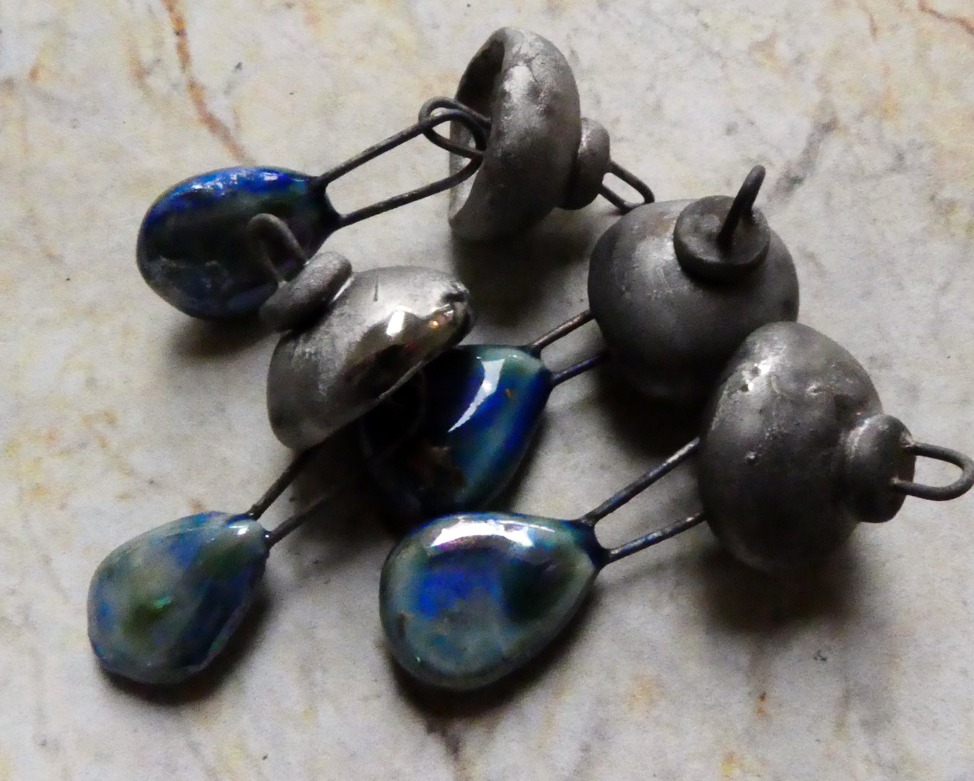 Ceramic Cap and Dangle Dangles - Soft Blue and Dusky Platinum