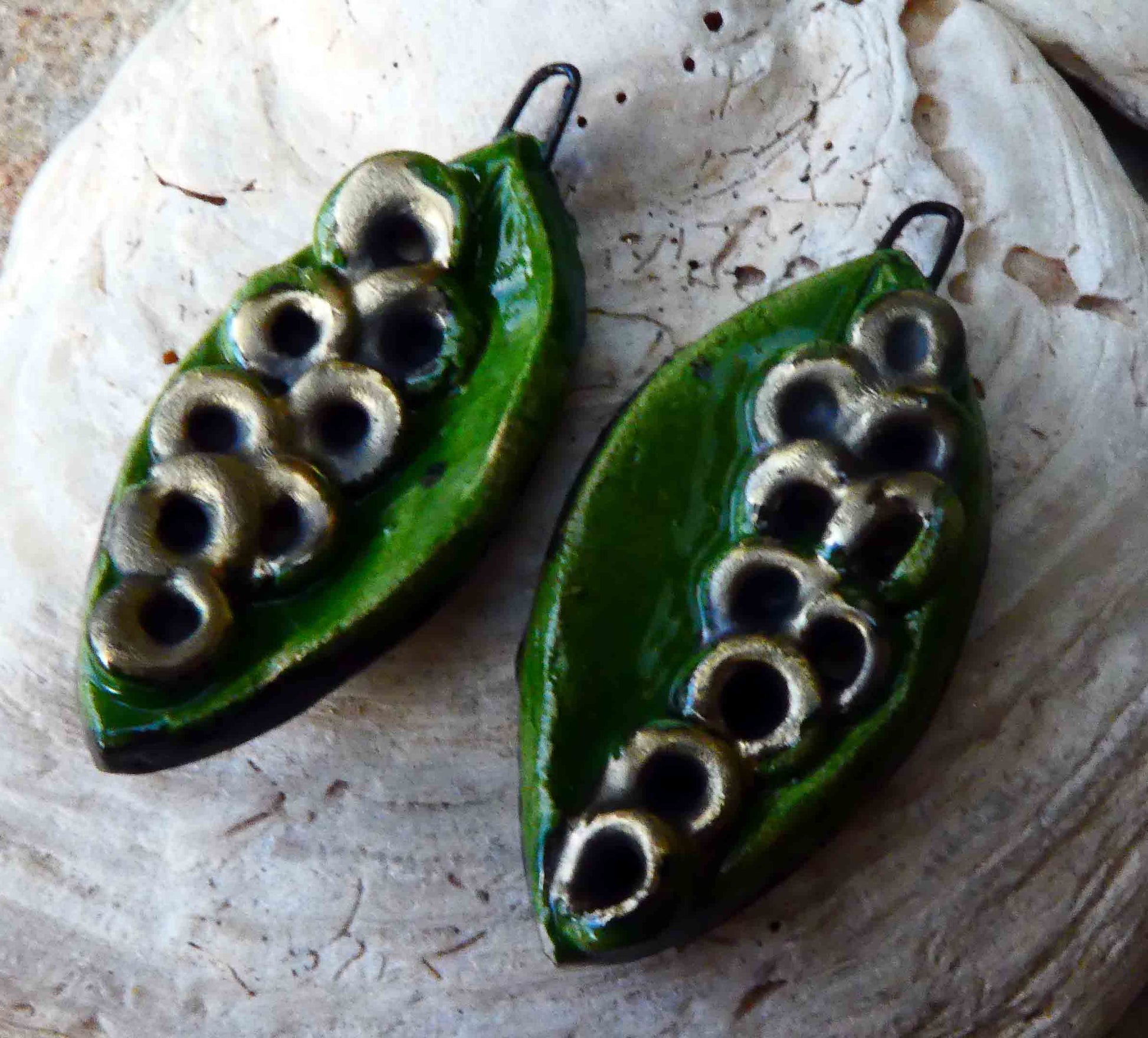 Ceramic Layered Lichen Leaf Earring Charms - Froggy