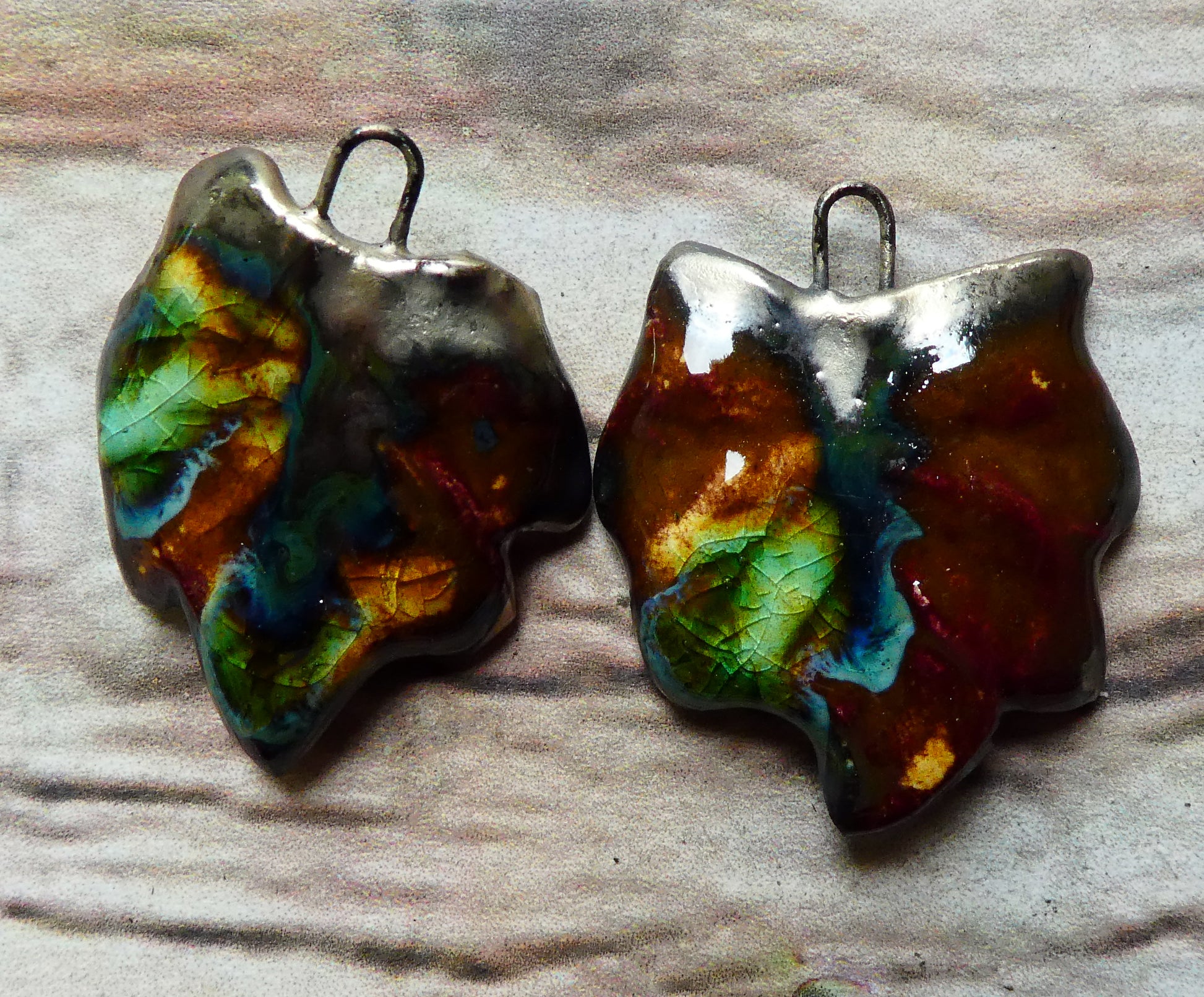 Hand formed in Earthstone and high fired. Then fired again with Bronze clay and Murano glaze.