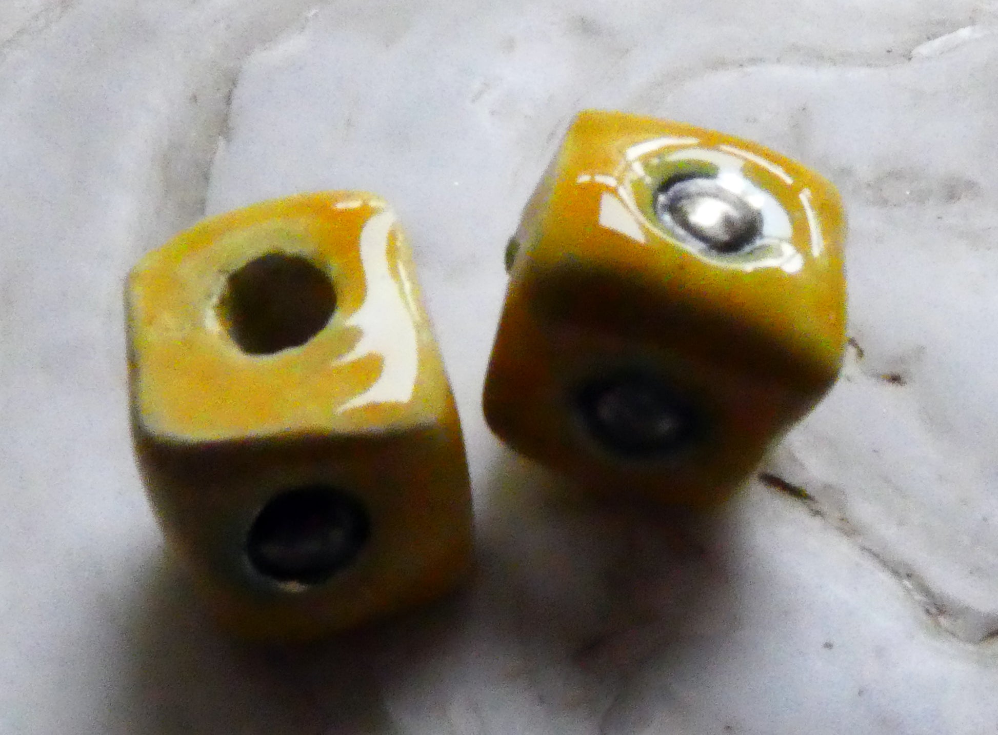 Hand formed in Earthstone and high fired. Applied with Yellow and Bronze clay, and fired again.