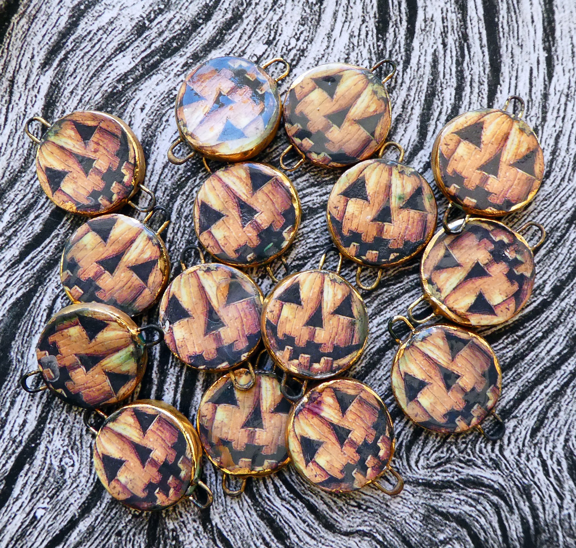 Ceramic Little Disc Pumpkin Decal Earring Connectors- Vintage