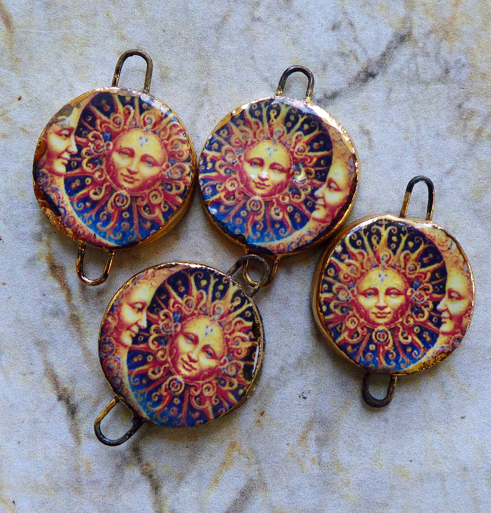 Ceramic Little Disc Vintage Sun and Moon Decal Earring Connectors #5