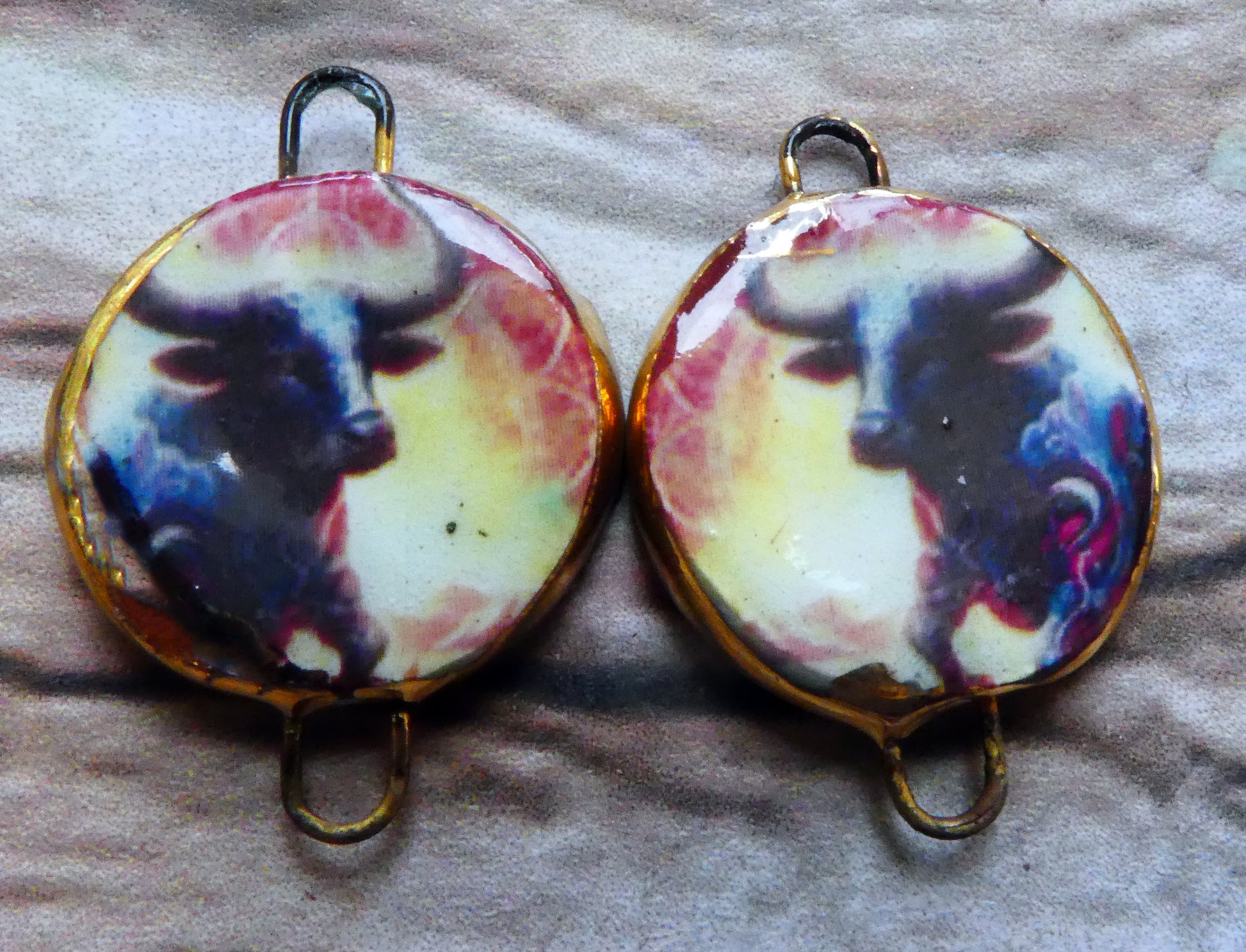 Ceramic Little Disc Zodiac Symbol Decal Earring Connectors-Taurus #1