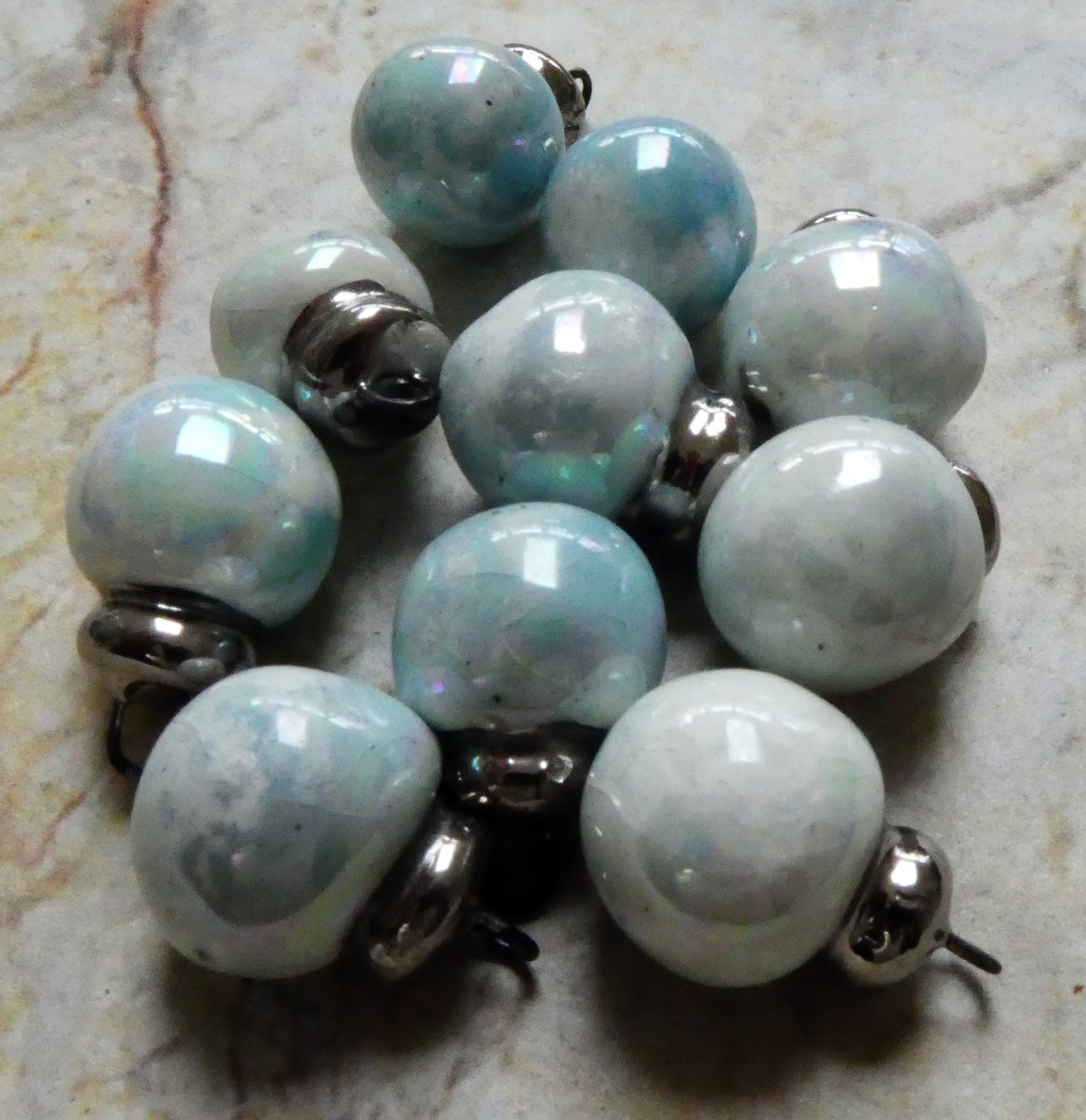 Porcelain Bobble Drops - Mother of Pearl and Platinum Lustre