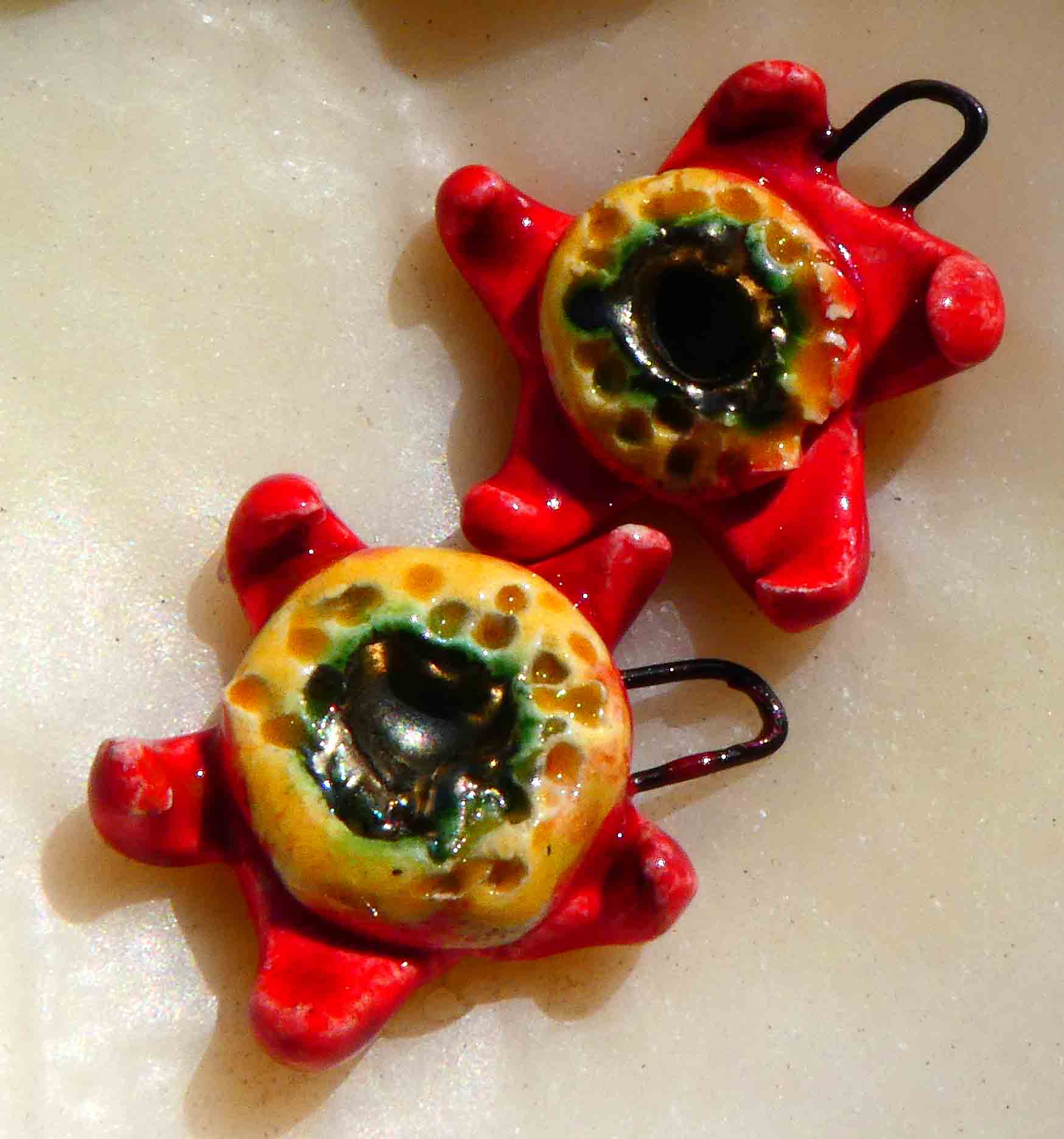 A pair of little ceramic funky flower drops.