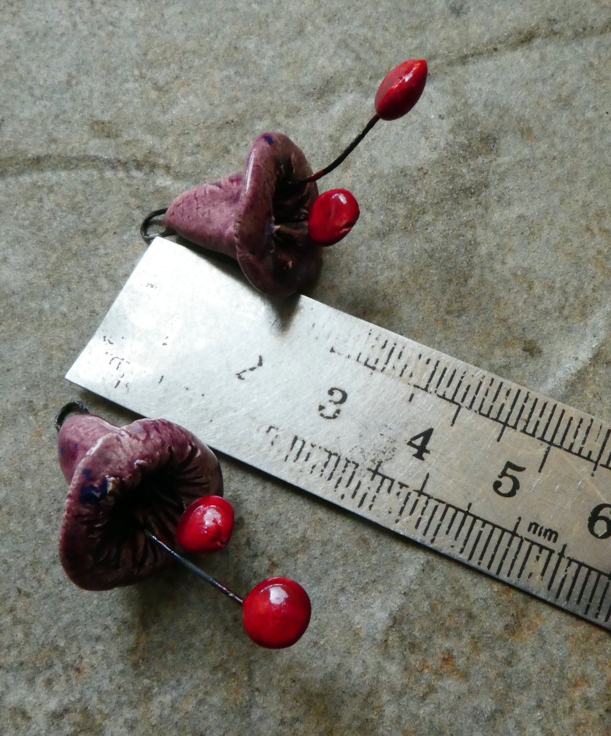 A pair of trumpet flower charms.