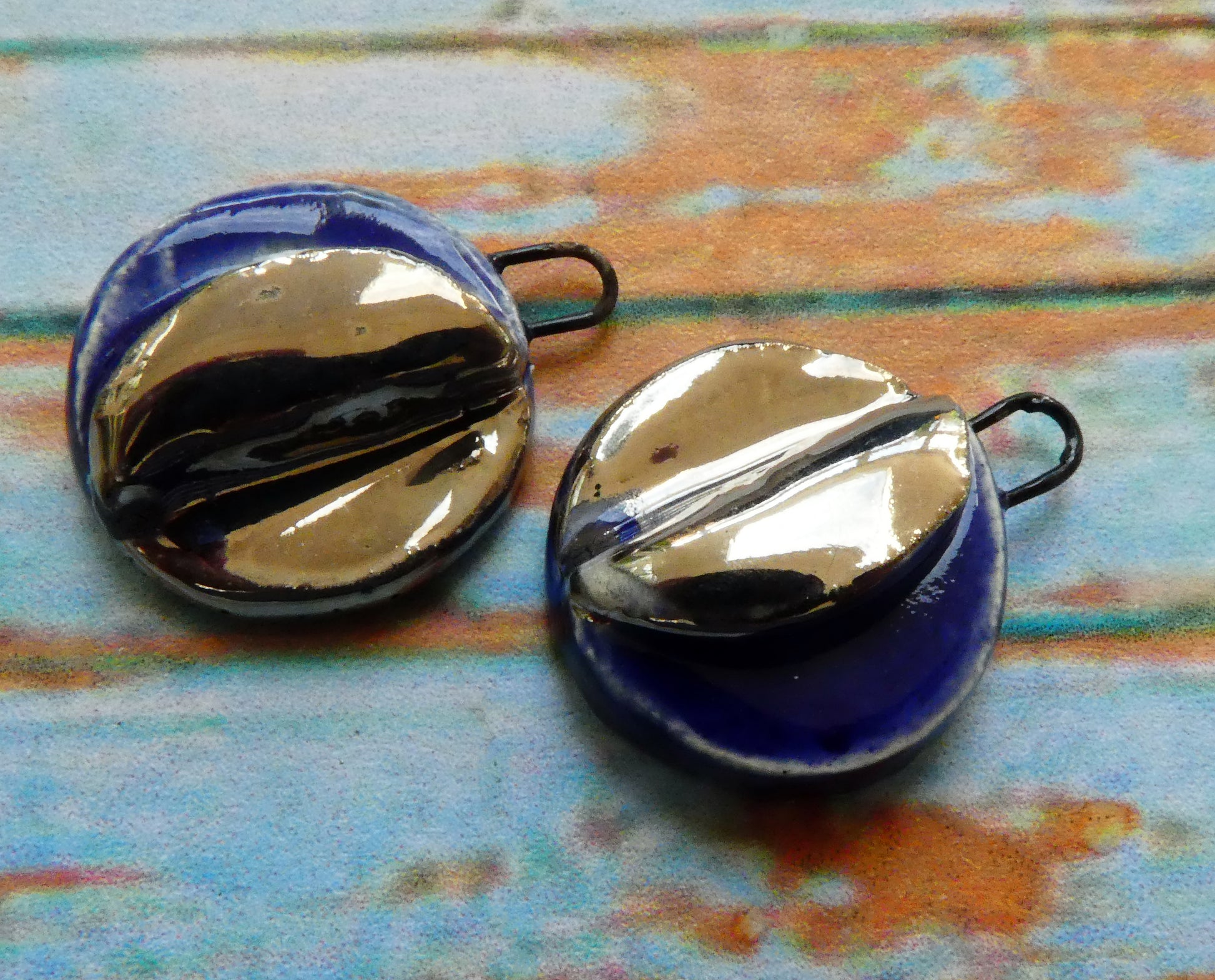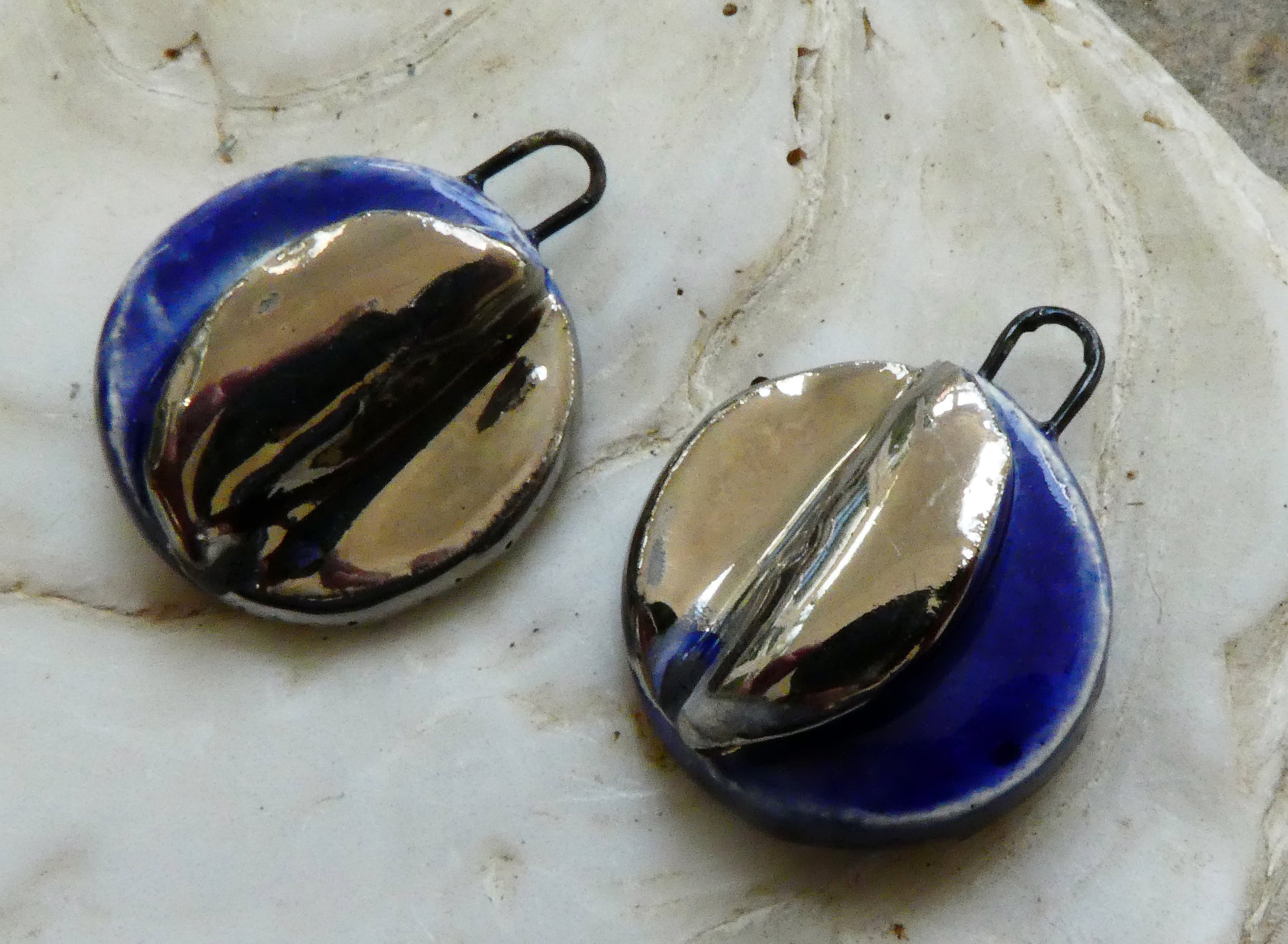 Ceramic Little Folded Disc Lustre Earring Charms - Mirror Blue