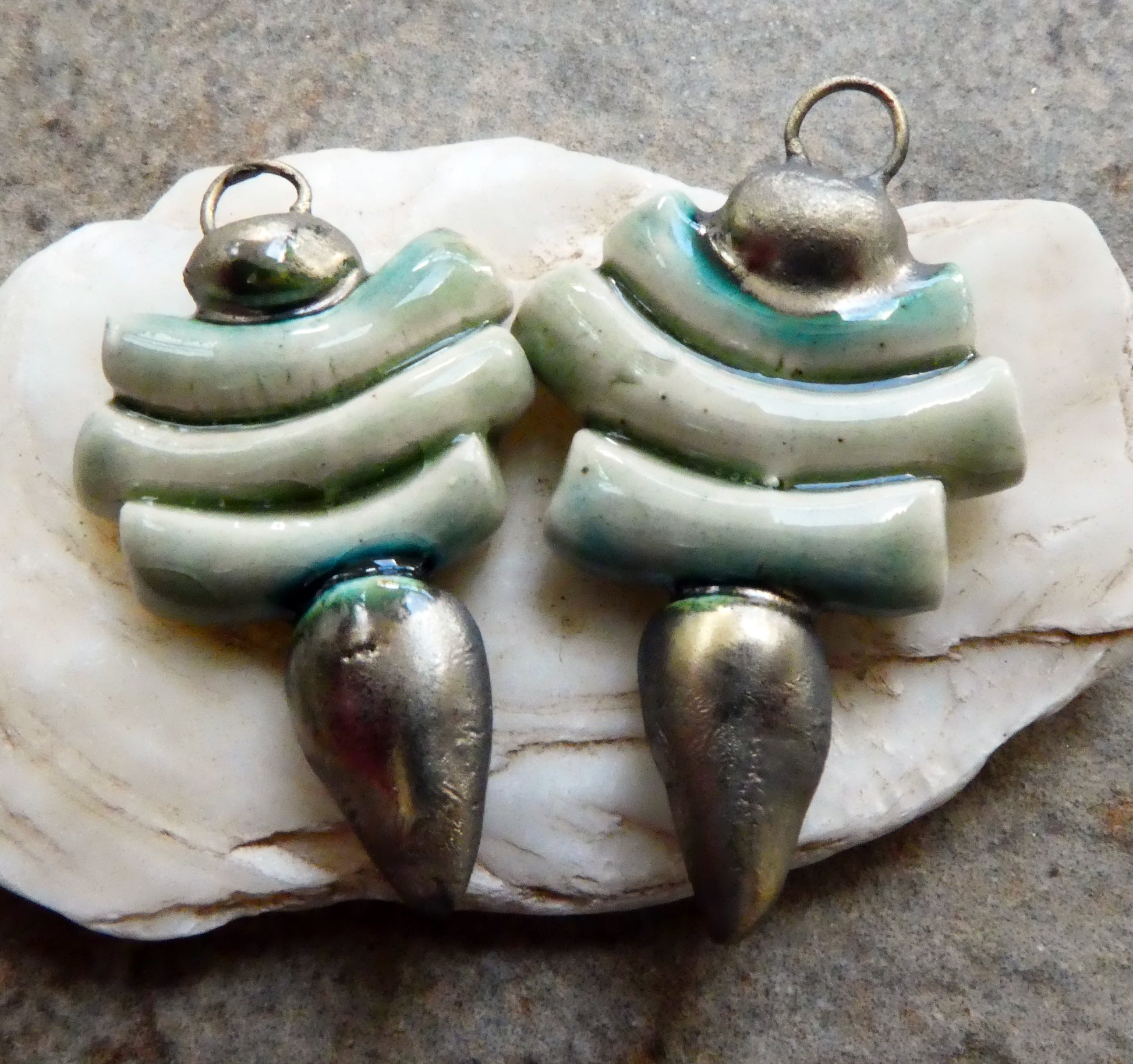 Ceramic Stick and Spikelet Earring Charms - Green Tea