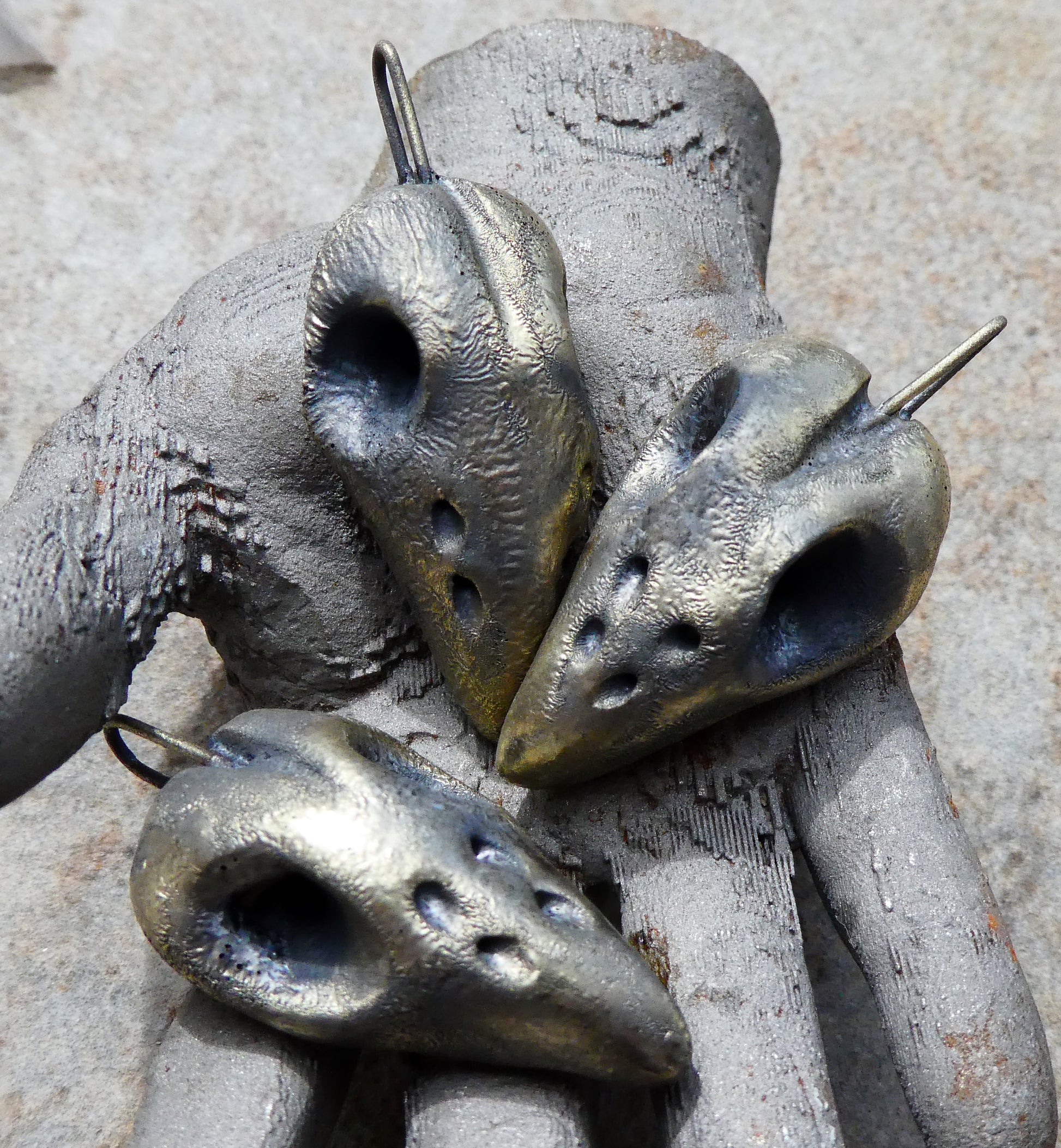Hand formed in Earthstone, and high fired. Then fired again with Bronze clay.