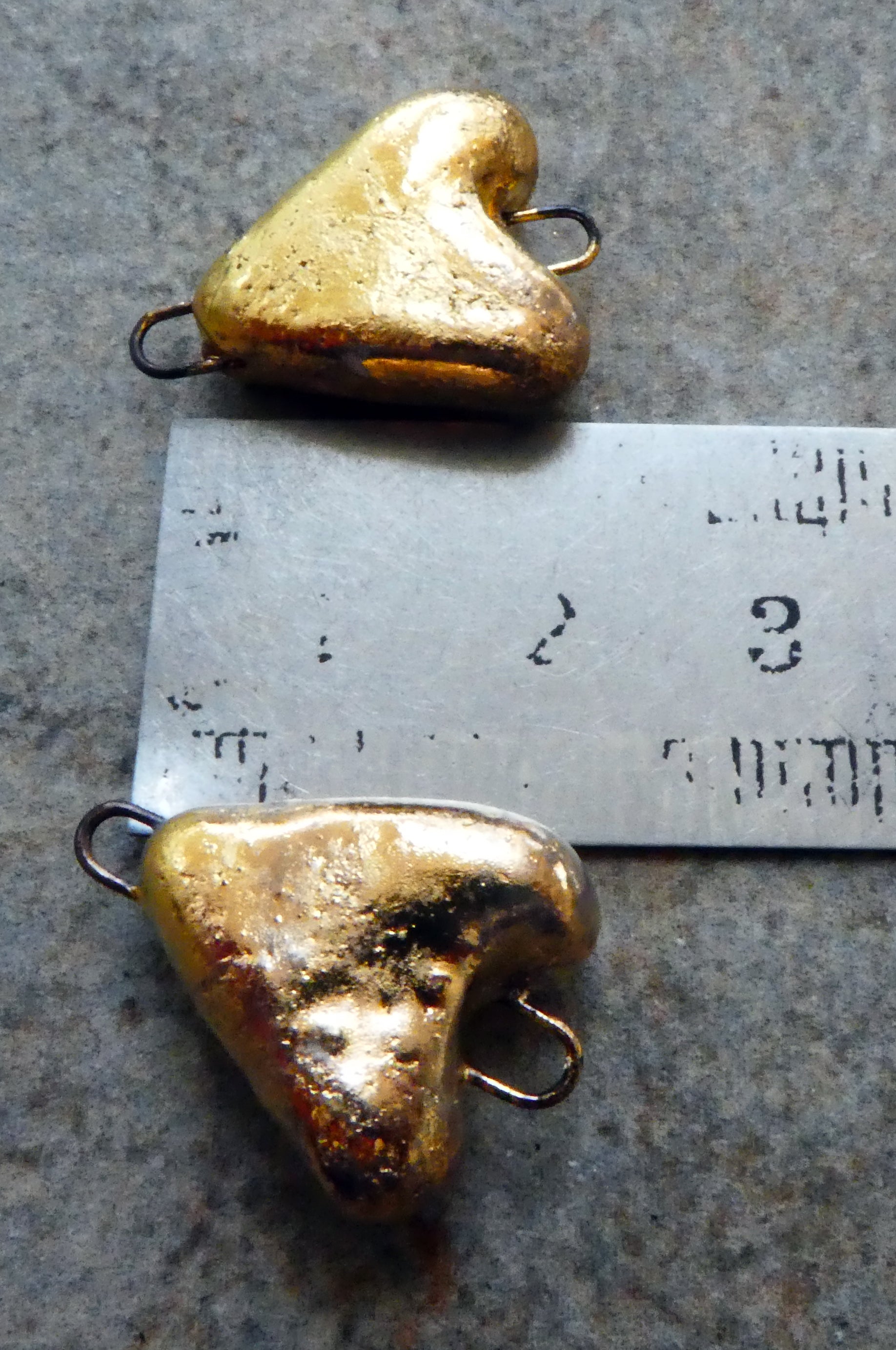 A pair of ceramic little heart connectors.